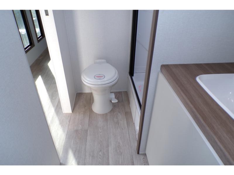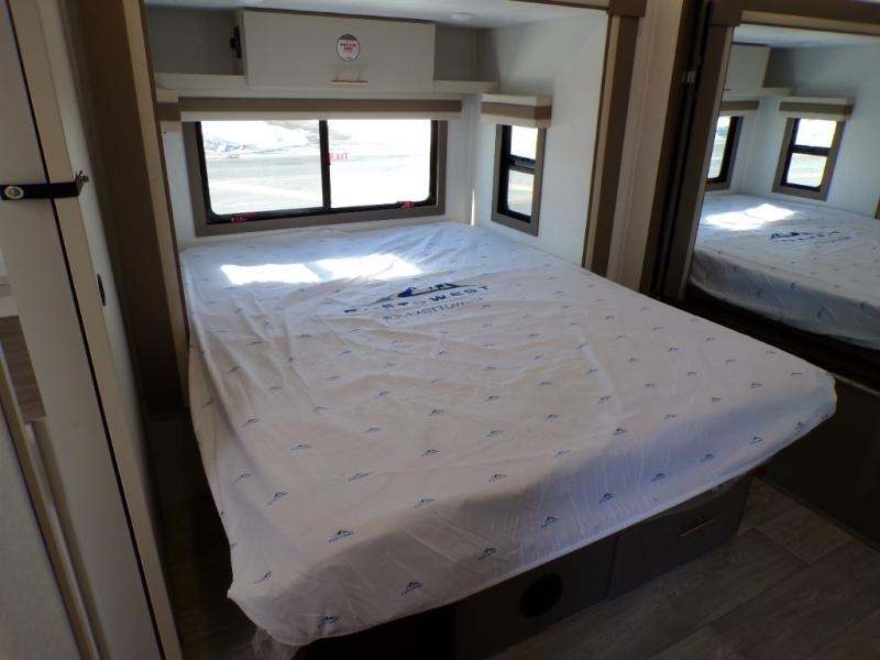 Each Alta travel trailer or toy hauler by EAST TO WEST is constructed with a 5" vacuum bonded roof, an enclosed and heated underbelly, and diamond plate front rock guard for added protection. Outside, you'll find exterior LED lights, a universal docking station, and back-up camera prep that can be added to make maneuvering in and out of campgrounds easier than ever. Inside, there are upgraded residential-inspired linoleum flooring, solid pressed membrane countertops, black roller shades, and many more interior comforts you are sure to love.