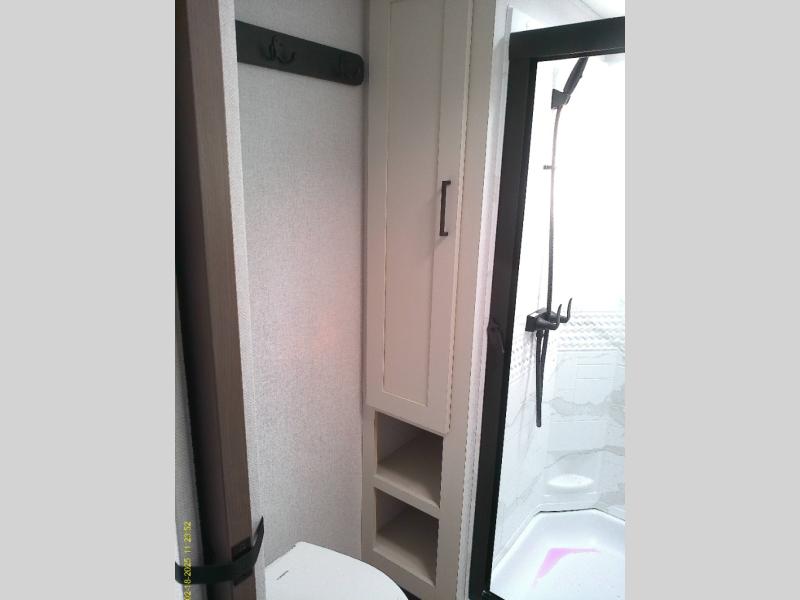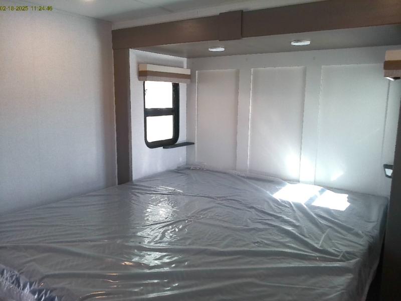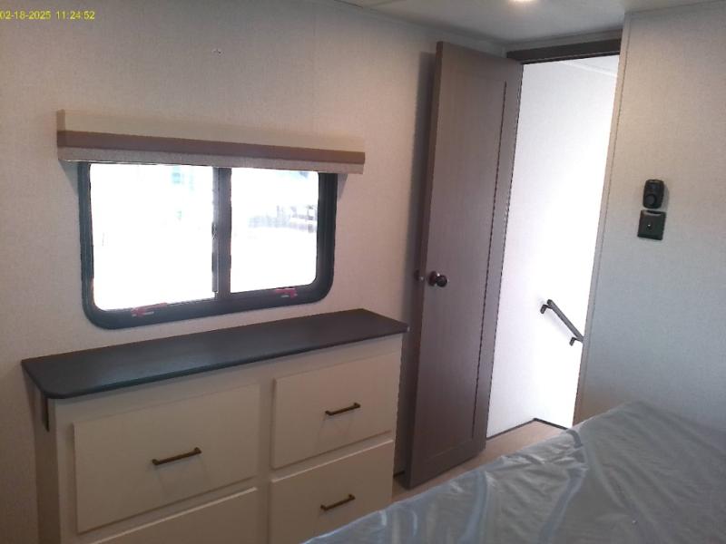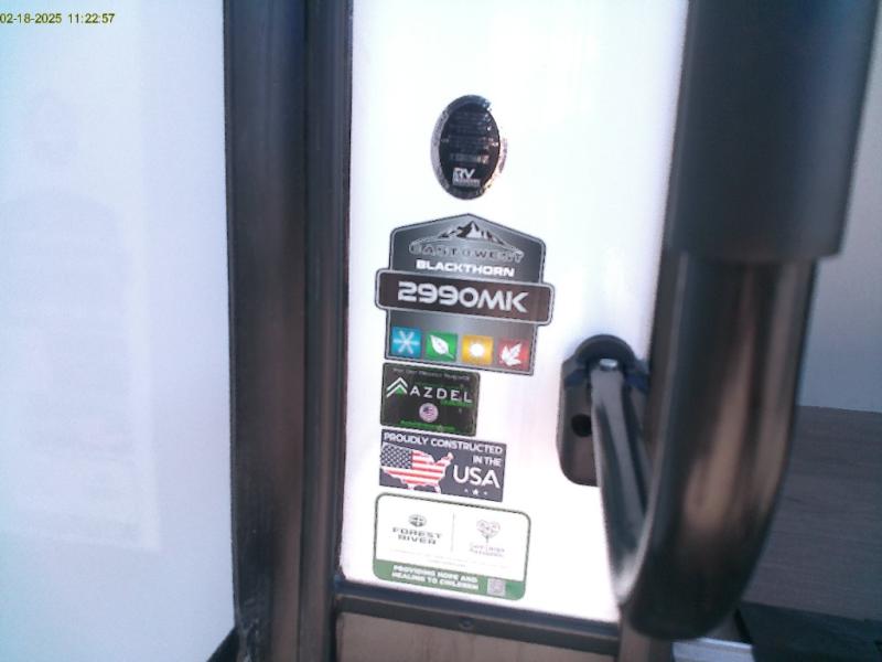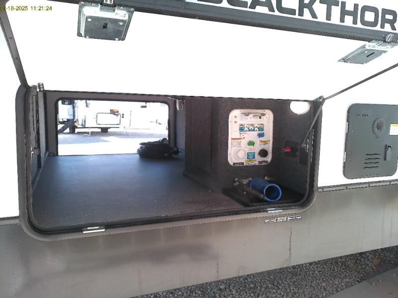 Each East to West Blackthorn Model is thoughtfully designed with both comfort and style in mind. The climate package features include an electric fireplace for cozy evenings, a high-capacity 35,000 BTU furnace, and a heated, enclosed underbelly with circulating heat to the dump valves for added protection and functionality. The Interior Luxury Package enhances the living space with solid surface kitchen countertops, Slow Rise roller shades for a sleek look and light control, and built-in CPAP shelves in the bed base for added convenience. On the outside, the Exterior Package delivers practical upgrades like solid entry steps with an extended grab handle, an oversized wide entrance door for easier access, and dual power awnings with LED lighting, perfect for enjoying your outdoor space day or night.