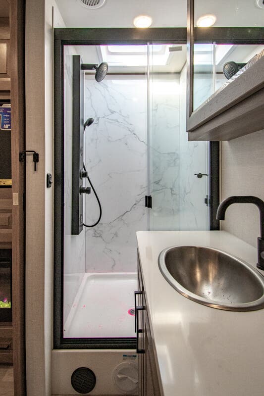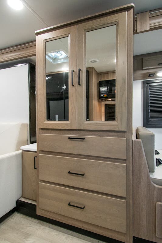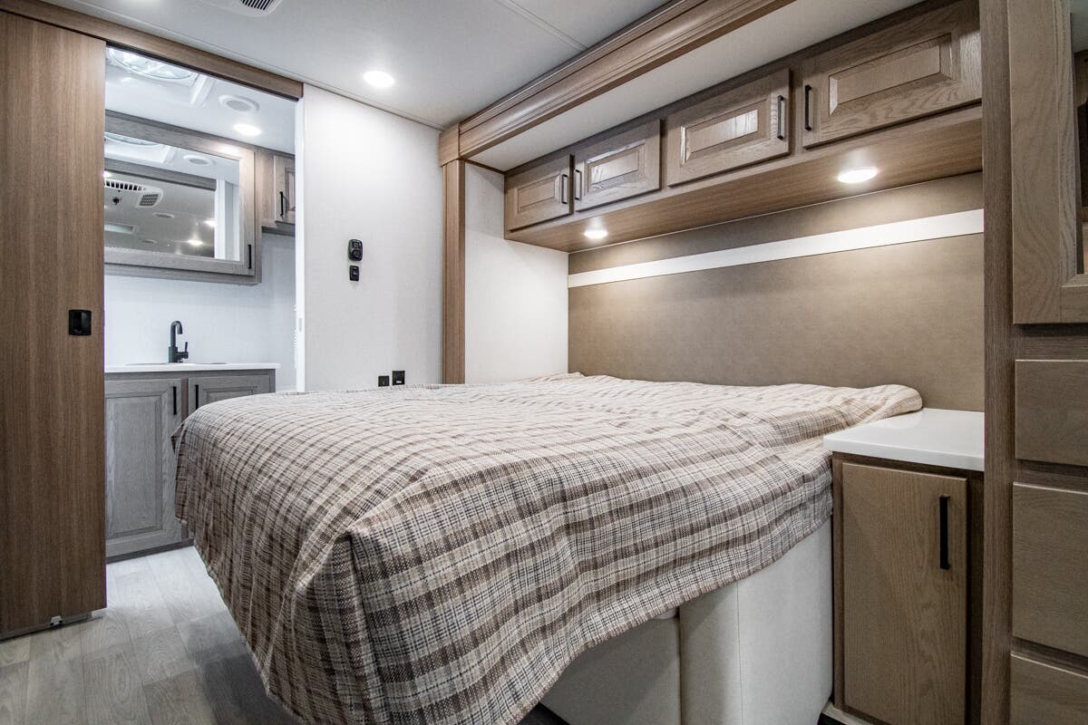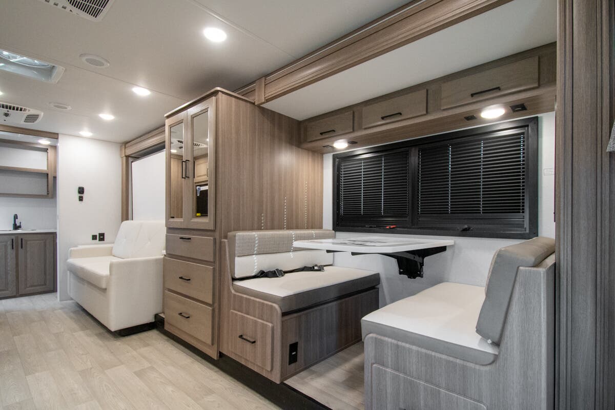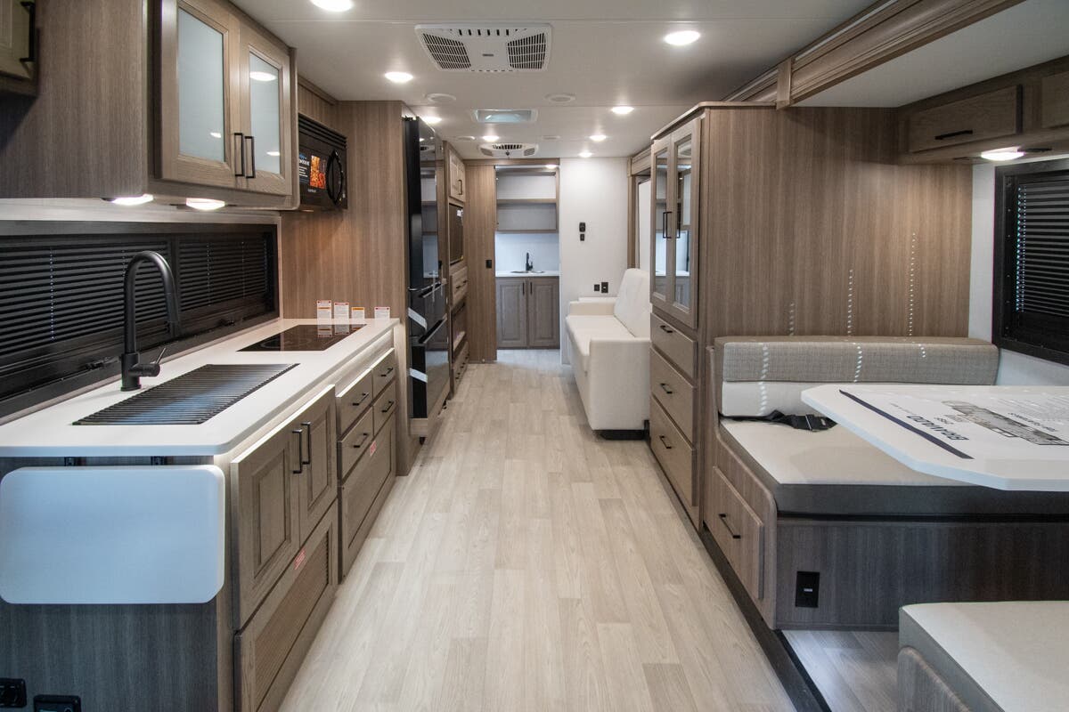 At Motor Home Specialist, we never charge prep or orientation fees. Every new RV sale includes a multi-point inspection, full interior and exterior detail, and a high-pressure rain booth test—an exclusive service in the industry. You'll also receive a comprehensive coach orientation with an MHSRV technician and a complimentary night in our delivery park with full hook-ups.
