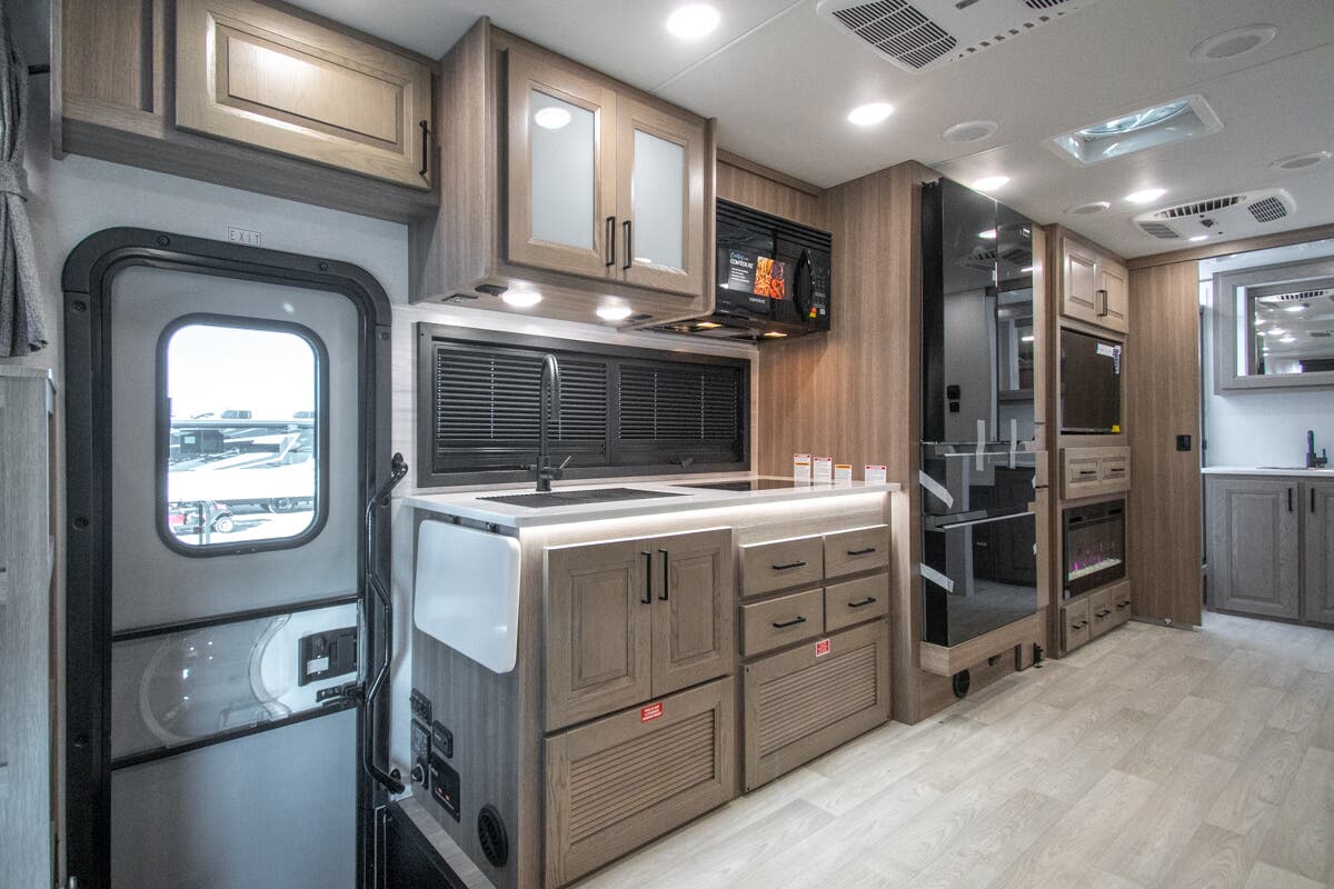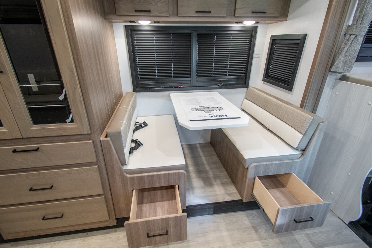 Approximately 32 feet 0 inches in length with one slide out and is powered by the Ford® 6.7L Power Stroke® V8 turbo diesel engine with 330HP and 10 speed transmission with selectable drive modes including Tow/Haul, Eco, Deep Sand/Snow. Also includes a SYNC 3 Enhanced Voice Recognition Communications and Entertainment System, 8" Color LCD touchscreen with swiping capability, 911 assist, AppLink and smart-charging USB ports and navigation. The Bravado Super C also features a 8KW Cummins Onan generator, residential convection microwave, 50 amp service, enclosed drain valves, outside shower, flush floor construction and much more.