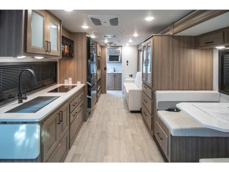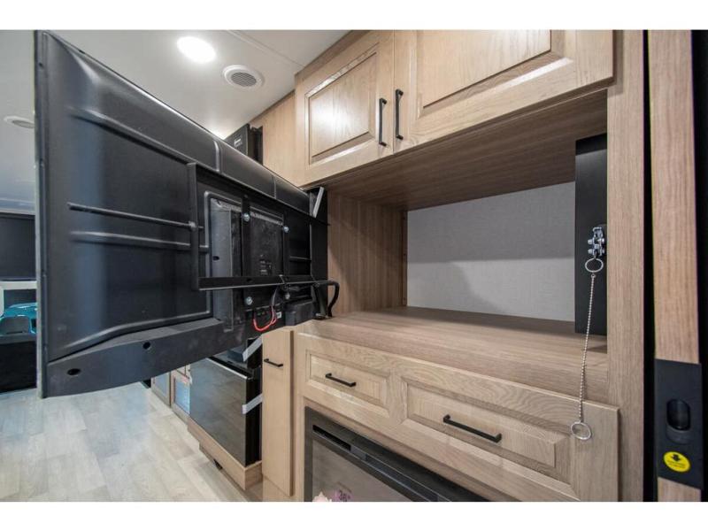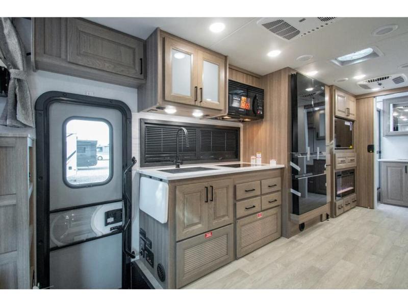 Approximately 32 feet 0 inches in length with one slide out and is powered by the Ford® 6.7L Power Stroke® V8 turbo diesel engine with 330HP and 10 speed transmission with selectable drive modes including Tow/Haul, Eco, Deep Sand/Snow. Also includes a SYNC 3 Enhanced Voice Recognition Communications and Entertainment System, 8" Color LCD touchscreen with swiping capability, 911 assist, AppLink and smart-charging USB ports and navigation. The Bravado Super C also features a 8KW Cummins Onan generator, residential convection microwave, 50 amp service, enclosed drain valves, outside shower, flush floor construction and much more.