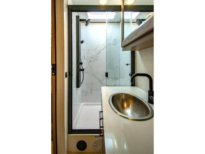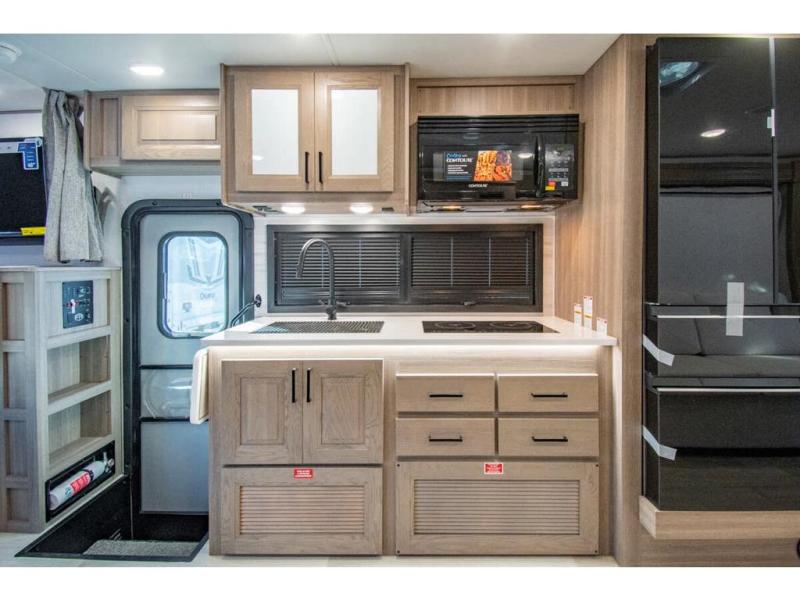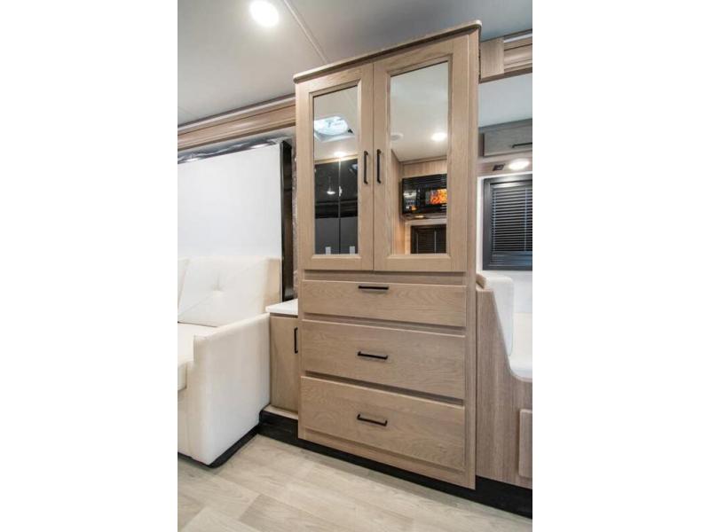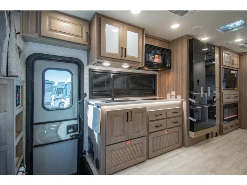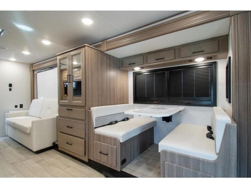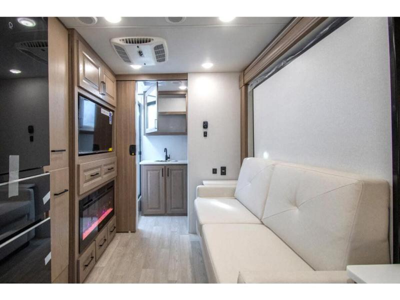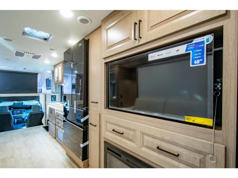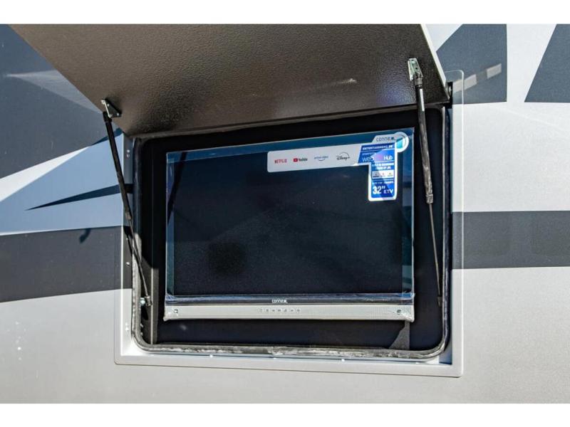 Approximately 32 feet 0 inches in length with one slide out and is powered by the Ford® 6.7L Power Stroke® V8 turbo diesel engine with 330HP and 10 speed transmission with selectable drive modes including Tow/Haul, Eco, Deep Sand/Snow. Also includes a SYNC 3 Enhanced Voice Recognition Communications and Entertainment System, 8" Color LCD touchscreen with swiping capability, 911 assist, AppLink and smart-charging USB ports and navigation. The Bravado Super C also features a 8KW Cummins Onan generator, residential convection microwave, 50 amp service, enclosed drain valves, outside shower, flush floor construction and much more.
