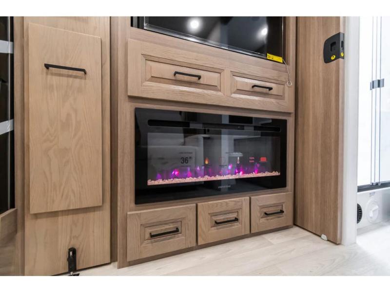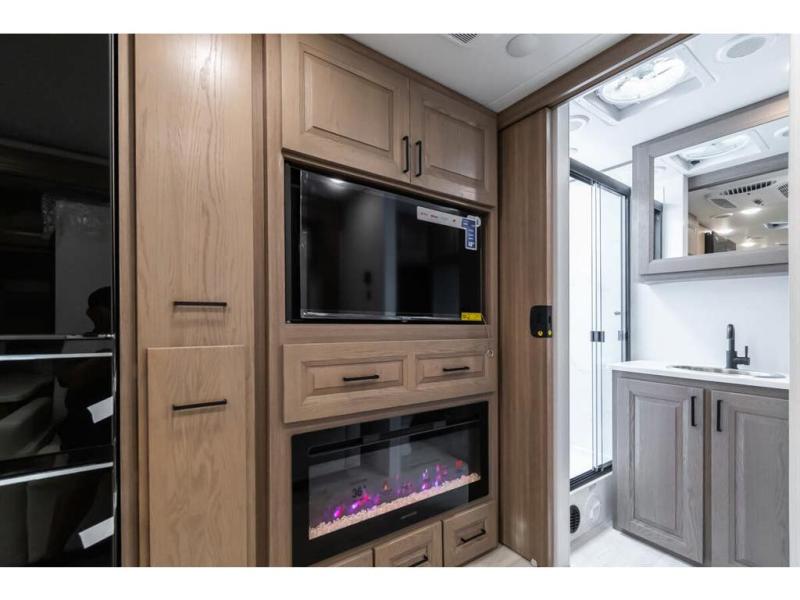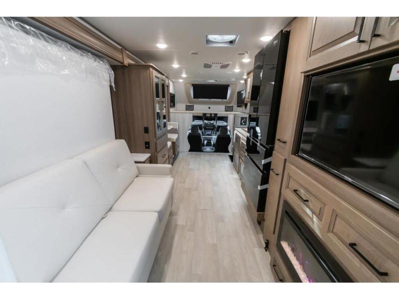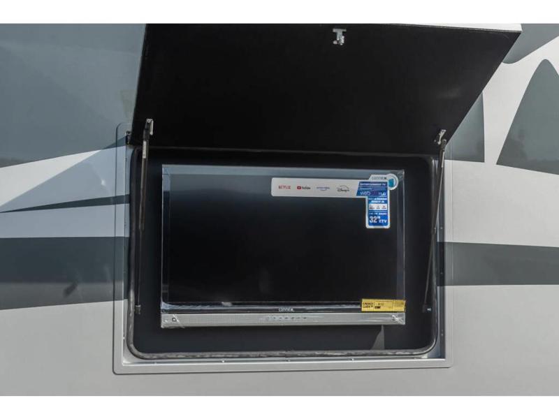Approximately 32 feet 0 inches in length with one slide out and is powered by the Ford® 6.7L Power Stroke® V8 turbo diesel engine with 330HP and 10 speed transmission with selectable drive modes including Tow/Haul, Eco, Deep Sand/Snow. Also includes a SYNC 3 Enhanced Voice Recognition Communications and Entertainment System, 8" Color LCD touchscreen with swiping capability, 911 assist, AppLink and smart-charging USB ports and navigation. The Bravado Super C also features a 8KW Cummins Onan generator, residential convection microwave, 50 amp service, enclosed drain valves, outside shower, flush floor construction and much more.
