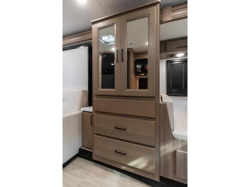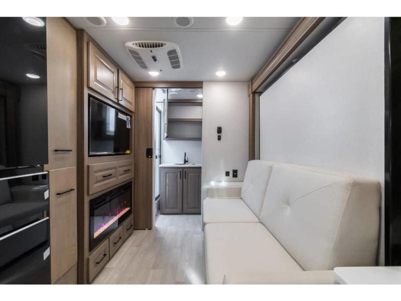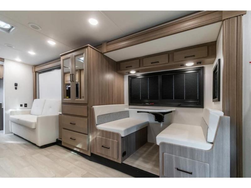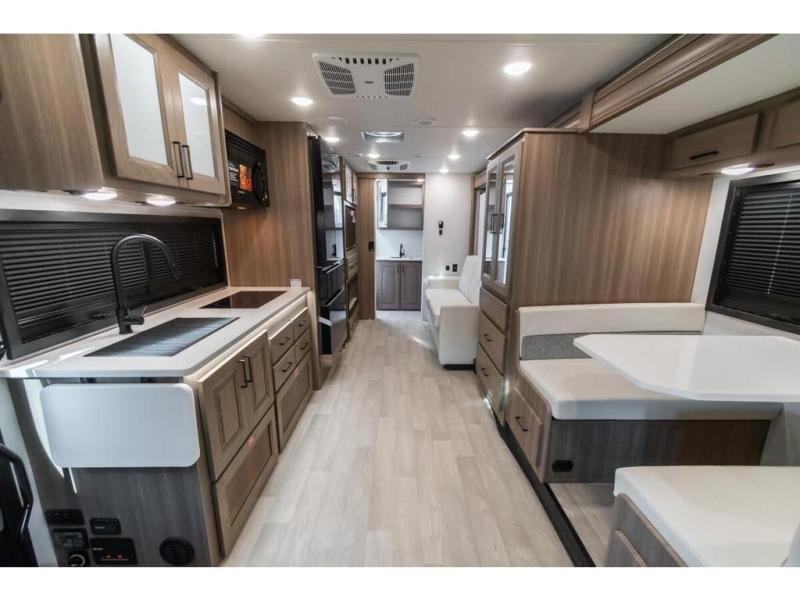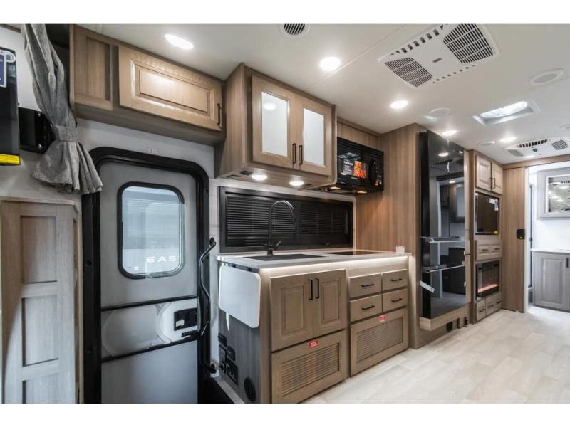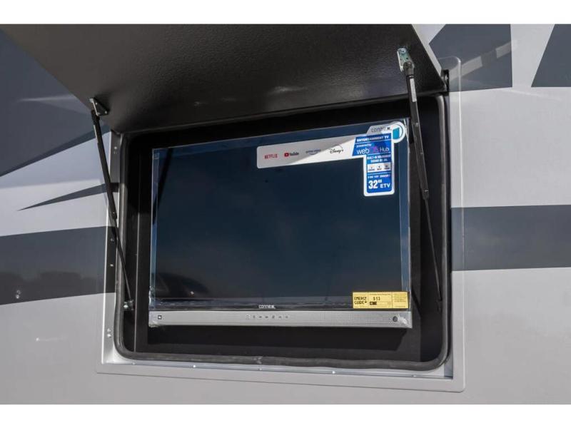 Approximately 32 feet 0 inches in length with one slide out and is powered by the Ford® 6.7L Power Stroke® V8 turbo diesel engine with 330HP and 10 speed transmission with selectable drive modes including Tow/Haul, Eco, Deep Sand/Snow. Also includes a SYNC 3 Enhanced Voice Recognition Communications and Entertainment System, 8" Color LCD touchscreen with swiping capability, 911 assist, AppLink and smart-charging USB ports and navigation. The Bravado Super C also features a 8KW Cummins Onan generator, residential convection microwave, 50 amp service, enclosed drain valves, outside shower, flush floor construction and much more.