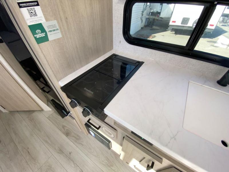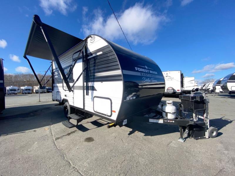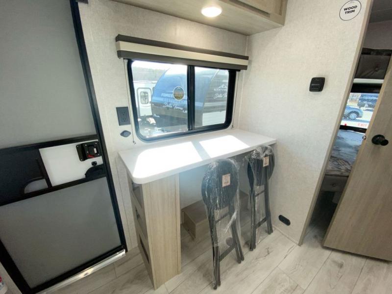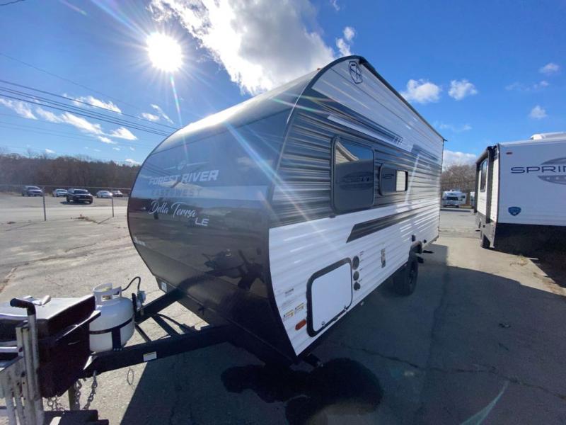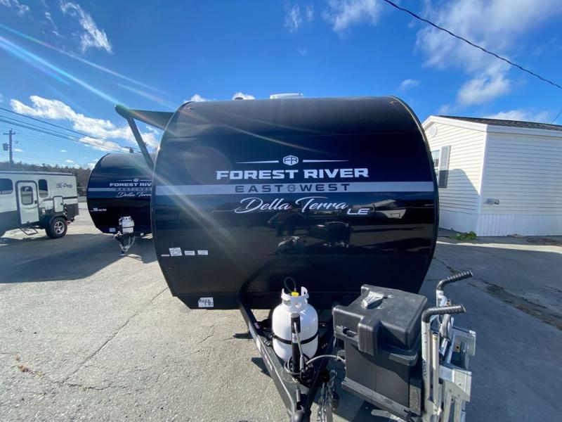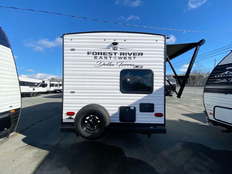 With any Della Terra LE travel trailer by EAST TO WEST, you will enjoy lightweight towing thanks to the single axle, along with many interior comforts. Each model is 8' wide with a 6' 9" interior ceiling height so you can walk around freely. There are seamless countertops also, along with motion sensor lights, a shower surround, and a USB charging station to keep your electronics ready to go. Outside, you'll find solar prep and ladder prep, an outside shower with hot and cold water, and a power awning with an LED light that will provide you with an inviting space outdoors.