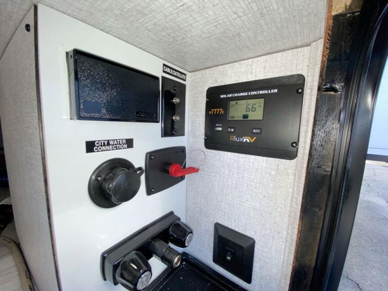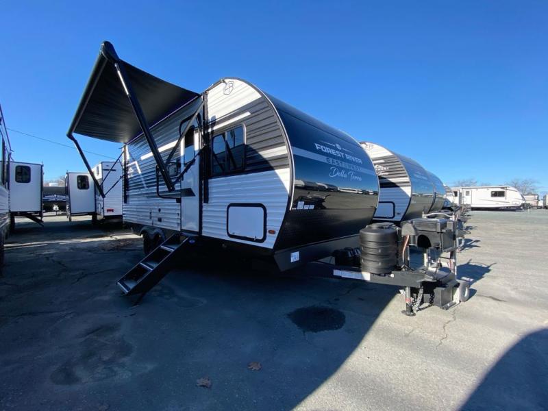 Each Della Terra travel trailer by EAST TO WEST is constructed with an enclosed and heated underbelly and enclosed holding tanks for added protection against the elements. There is also a power tongue jack with an LED light for easy set up and a power awning with LED lights you can rest under after you've unpacked. The Explore Comfort Package comes seamless pressed countertops, kitchen backsplash, window valance package with black night shades, and many more comforts. You will also appreciate the Adventure Outdoor Package with backup camera prep and solar prep, a tankless water heater, an RV grill quick disconnect, and a universal docking station with battery disconnect.