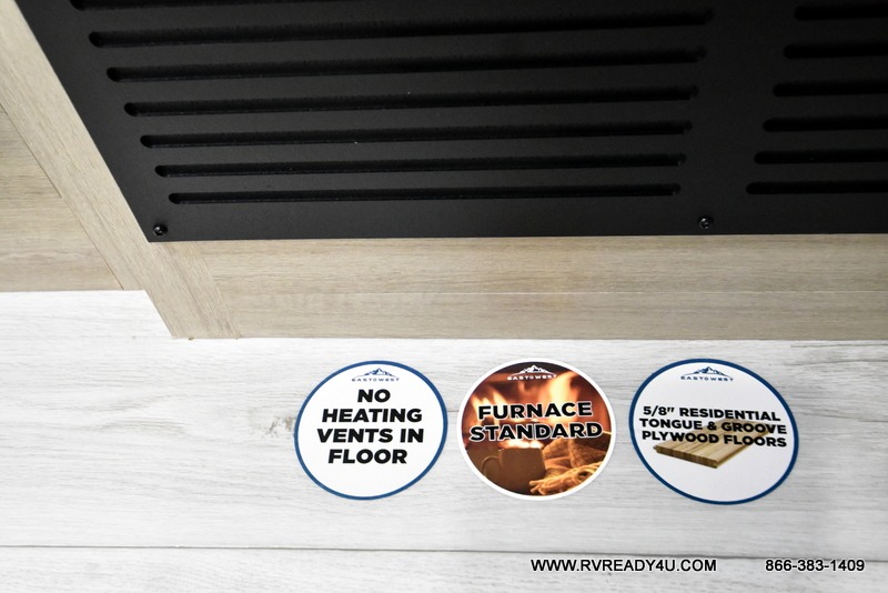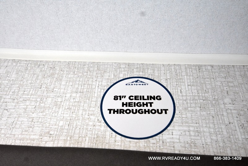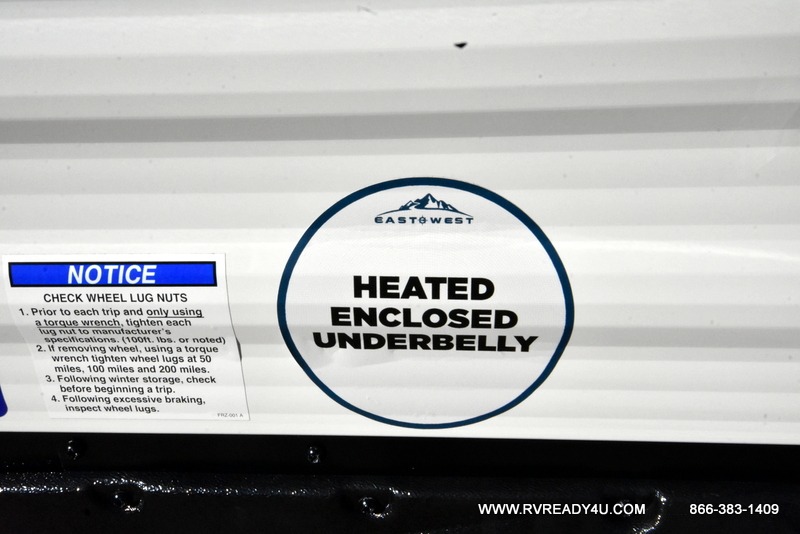 Each Della Terra travel trailer by EAST TO WEST is constructed with an enclosed and heated underbelly and enclosed holding tanks for added protection against the elements. There is also a power tongue jack with an LED light for easy set up and a power awning with LED lights you can rest under after you've unpacked. The Explore Comfort Package comes seamless pressed countertops, kitchen backsplash, window valance package with black night shades, and many more comforts. You will also appreciate the Adventure Outdoor Package with backup camera prep and solar prep, a tankless water heater, an RV grill quick disconnect, and a universal docking station with battery disconnect.