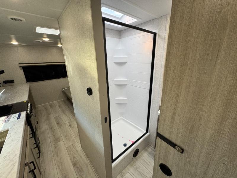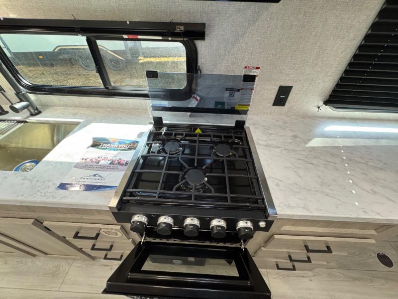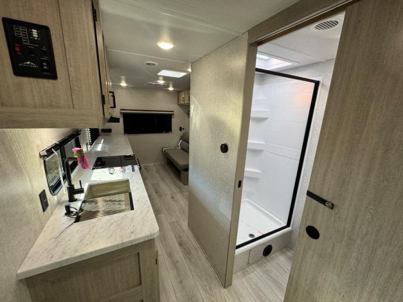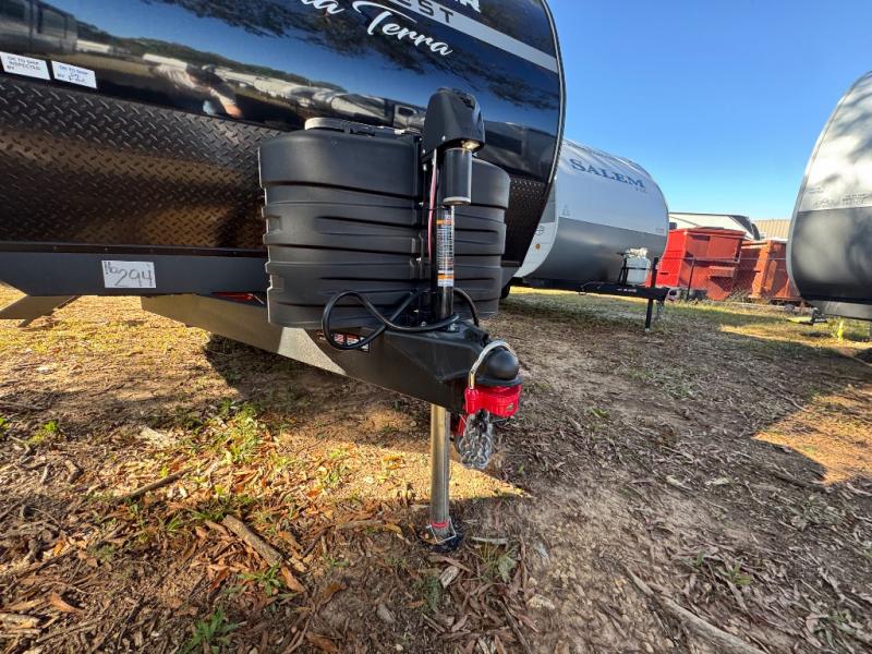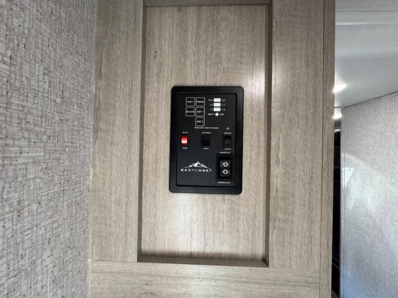 Each Della Terra travel trailer by EAST TO WEST is constructed with an enclosed and heated underbelly and enclosed holding tanks for added protection against the elements. There is also a power tongue jack with an LED light for easy set up and a power awning with LED lights you can rest under after you've unpacked. The Explore Comfort Package comes seamless pressed countertops, kitchen backsplash, window valance package with black night shades, and many more comforts. You will also appreciate the Adventure Outdoor Package with backup camera prep and solar prep, a tankless water heater, an RV grill quick disconnect, and a universal docking station with battery disconnect.