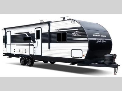 Each Della Terra travel trailer by EAST TO WEST is constructed with an enclosed and heated underbelly and enclosed holding tanks so you can camp all year long. There is also a power tongue jack with an LED light for easy set up and a power awning with LED lights you can rest under after you've unpacked. The Explore Comfort Package comes seamless pressed countertops, kitchen backsplash, window valance package with black night shades, and many more comforts. You will also appreciate the Adventure Outdoor Package with backup camera prep and solar prep, a tankless water heater, an RV grill quick disconnect, and a universal docking station with battery disconnect.