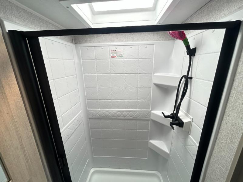Each Della Terra travel trailer by EAST TO WEST is constructed with an enclosed and heated underbelly and enclosed holding tanks for added protection against the elements. There is also a power tongue jack with an LED light for easy set up and a power awning with LED lights you can rest under after you've unpacked. The Explore Comfort Package comes seamless pressed countertops, kitchen backsplash, window valance package with black night shades, and many more comforts. You will also appreciate the Adventure Outdoor Package with backup camera prep and solar prep, a tankless water heater, an RV grill quick disconnect, and a universal docking station with battery disconnect.
