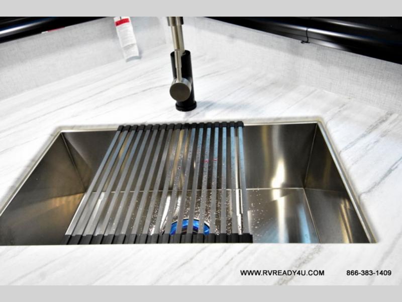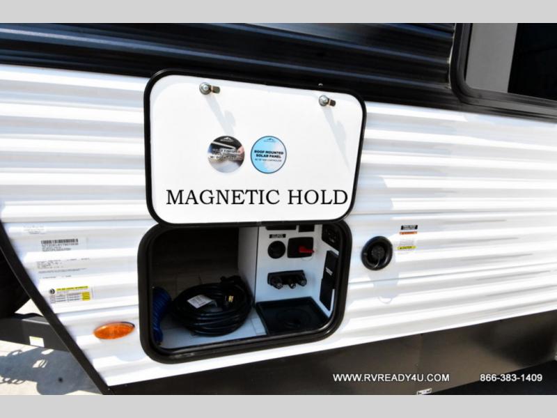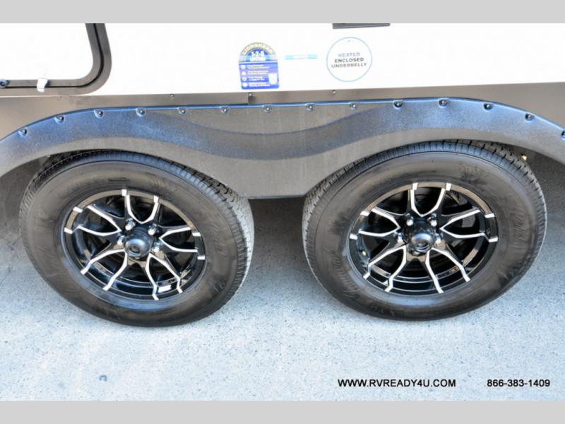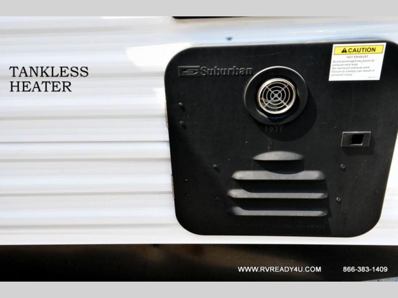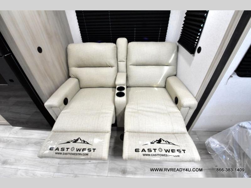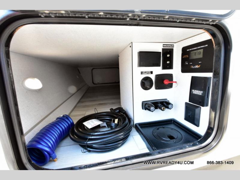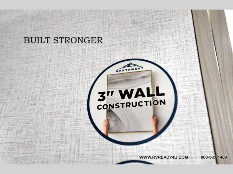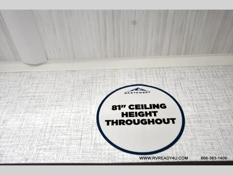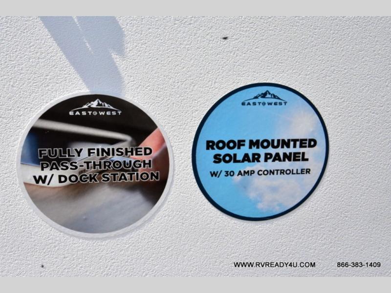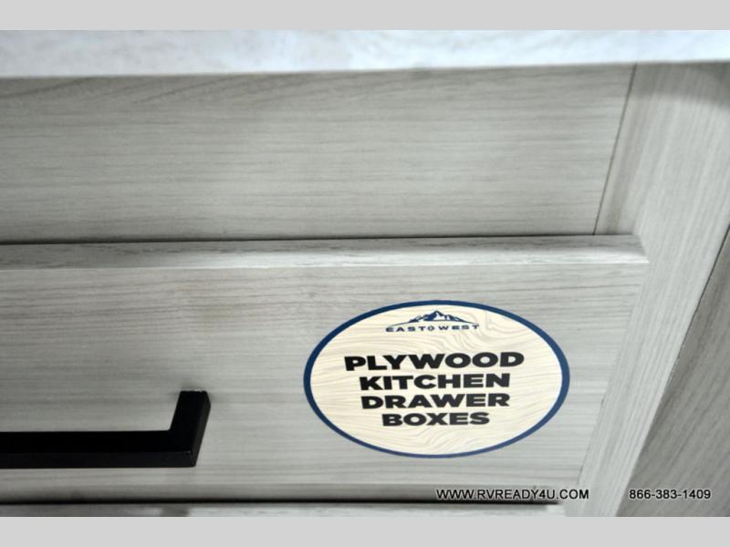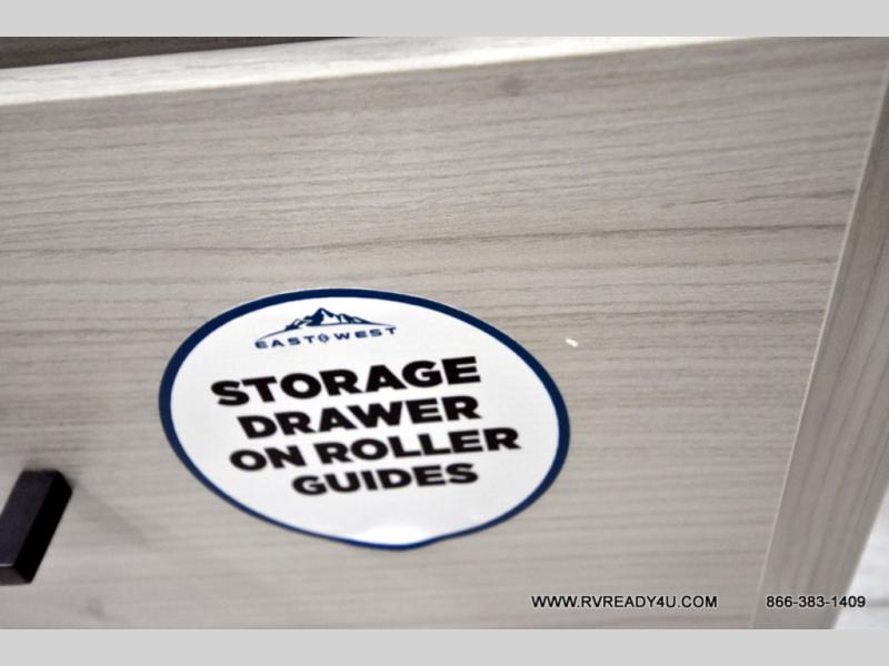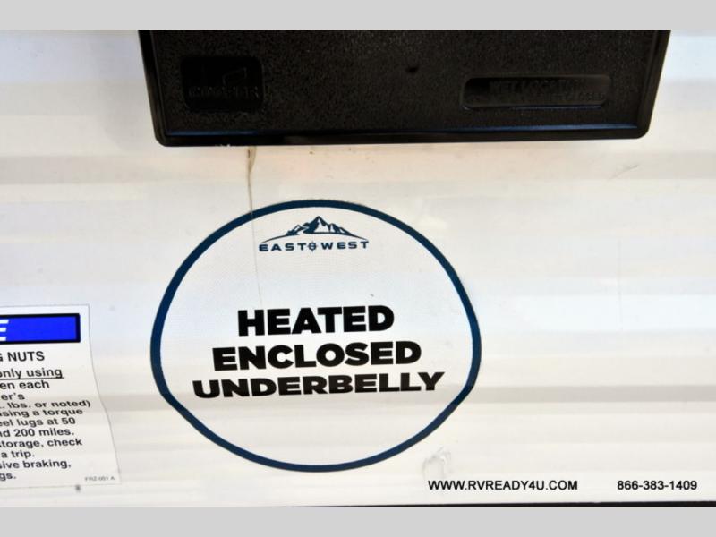 Each Della Terra travel trailer by EAST TO WEST is constructed with an enclosed and heated underbelly and enclosed holding tanks for added protection against the elements. There is also a power tongue jack with an LED light for easy set up and a power awning with LED lights you can rest under after you've unpacked. The Explore Comfort Package comes seamless pressed countertops, kitchen backsplash, window valance package with black night shades, and many more comforts. You will also appreciate the Adventure Outdoor Package with backup camera prep and solar prep, a tankless water heater, an RV grill quick disconnect, and a universal docking station with battery disconnect.