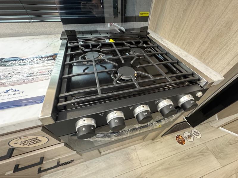 Each Della Terra travel trailer by EAST TO WEST is constructed with an enclosed and heated underbelly and enclosed holding tanks for added protection against the elements. There is also a power tongue jack with an LED light for easy set up and a power awning with LED lights you can rest under after you've unpacked. The Explore Comfort Package comes seamless pressed countertops, kitchen backsplash, window valance package with black night shades, and many more comforts. You will also appreciate the Adventure Outdoor Package with backup camera prep and solar prep, a tankless water heater, an RV grill quick disconnect, and a universal docking station with battery disconnect.