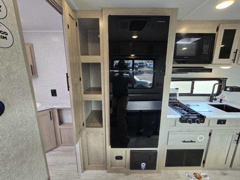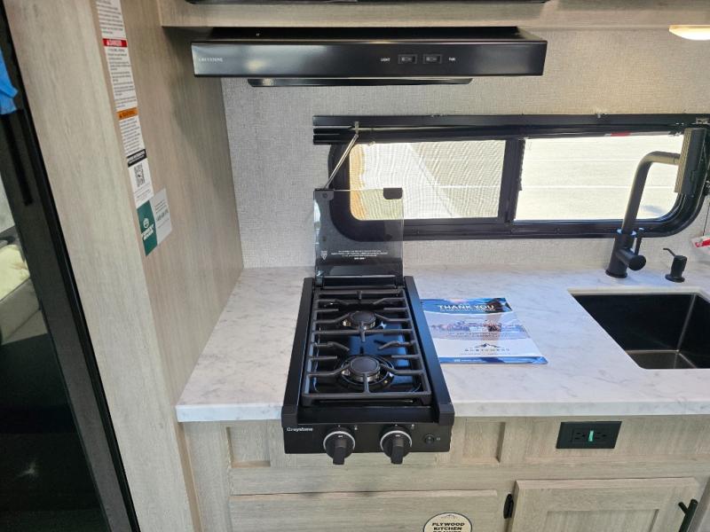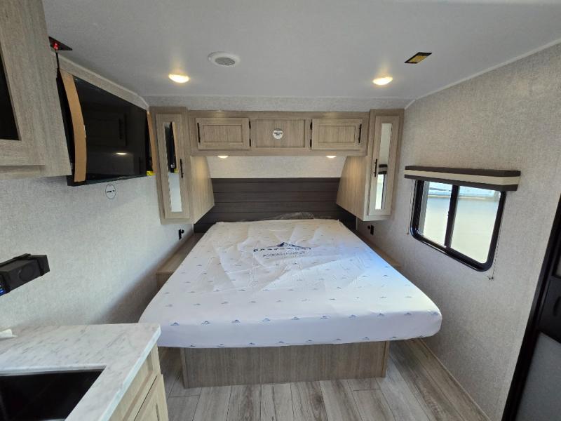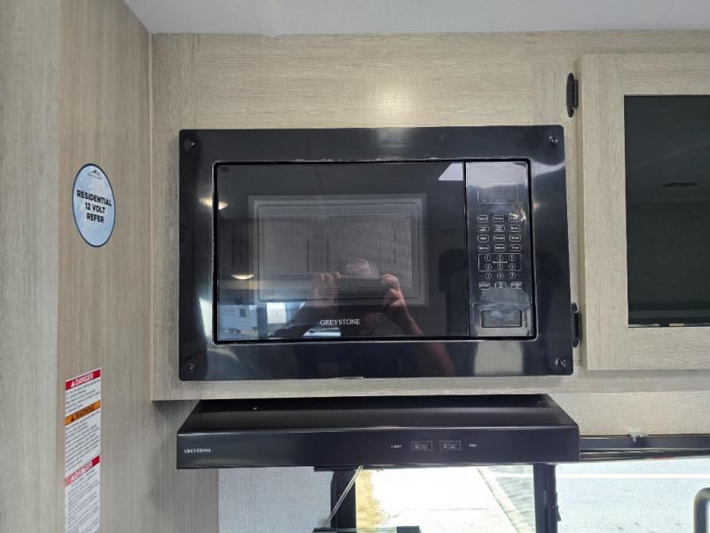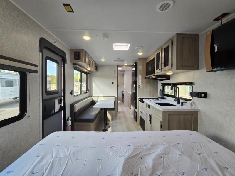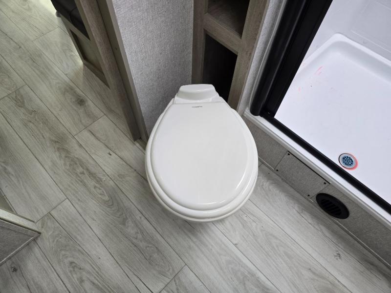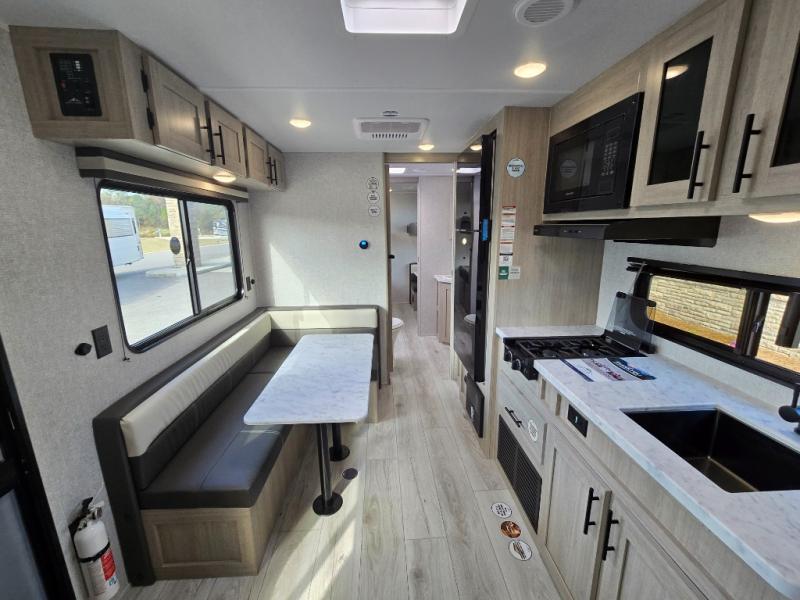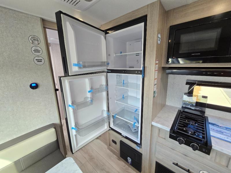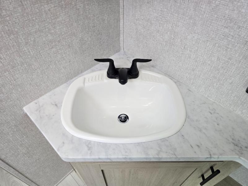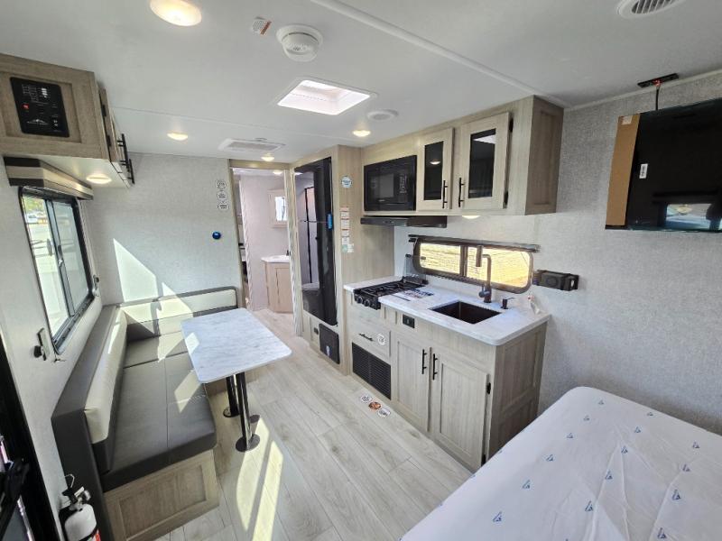 There is much to love in this travel trailer! Starting with the rear private bunkhouse which has a set of double bunk beds with storage underneath and a bunk over a booth dinette with storage underneath it too. The front king bed also has storage underneath it, as well as wardrobes and nightstands on either side of it for your clothes and books. The chef can prepare their best home cooked meals in the fully equipped kitchen, and everyone can enjoy them at the L-shaped dinette with storage underneath for boardgames to play after dinner. The walk-through bathroom makes it easy for all to access the 30" x 36" shower, and you even have an outside shower to rinse the mud off of your feet before entering inside!