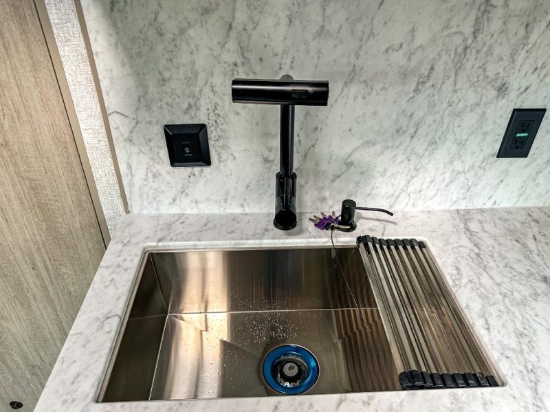 Each Della Terra travel trailer by EAST TO WEST is constructed with an enclosed and heated underbelly and enclosed holding tanks for added protection against the elements. There is also a power tongue jack with an LED light for easy set up and a power awning with LED lights you can rest under after you've unpacked. The Explore Comfort Package comes seamless pressed countertops, kitchen backsplash, window valance package with black night shades, and many more comforts. You will also appreciate the Adventure Outdoor Package with backup camera prep and solar prep, a tankless water heater, an RV grill quick disconnect, and a universal docking station with battery disconnect.