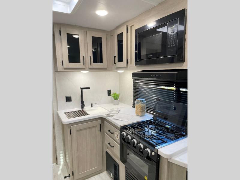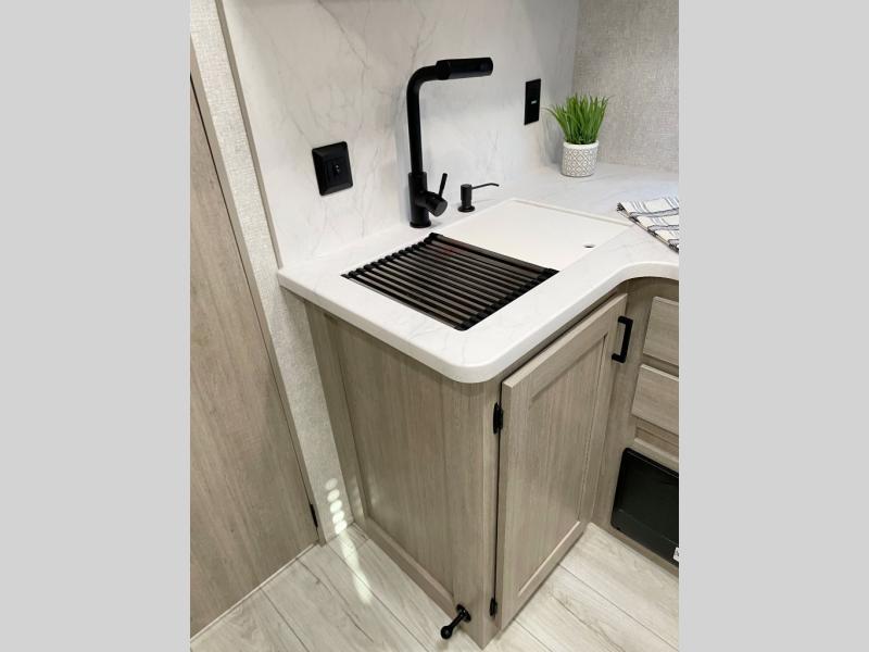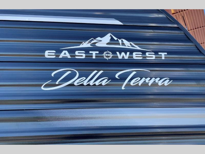 Each Della Terra travel trailer by EAST TO WEST is constructed with an enclosed and heated underbelly and enclosed holding tanks for added protection against the elements. There is also a power tongue jack with an LED light for easy set up and a power awning with LED lights you can rest under after you've unpacked. The Explore Comfort Package comes seamless pressed countertops, kitchen backsplash, window valance package with black night shades, and many more comforts. You will also appreciate the Adventure Outdoor Package with backup camera prep and solar prep, a tankless water heater, an RV grill quick disconnect, and a universal docking station with battery disconnect.