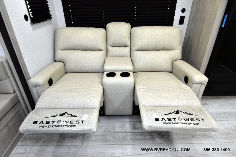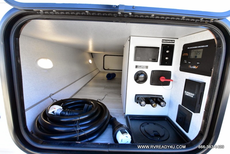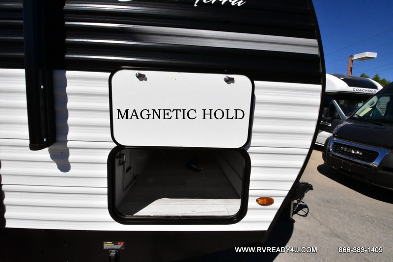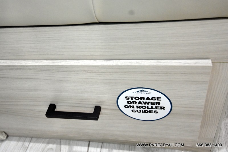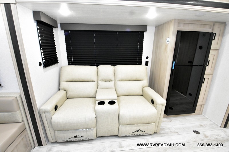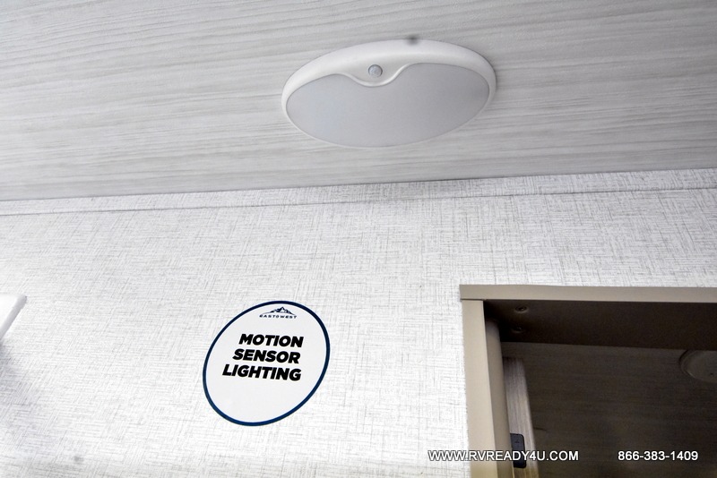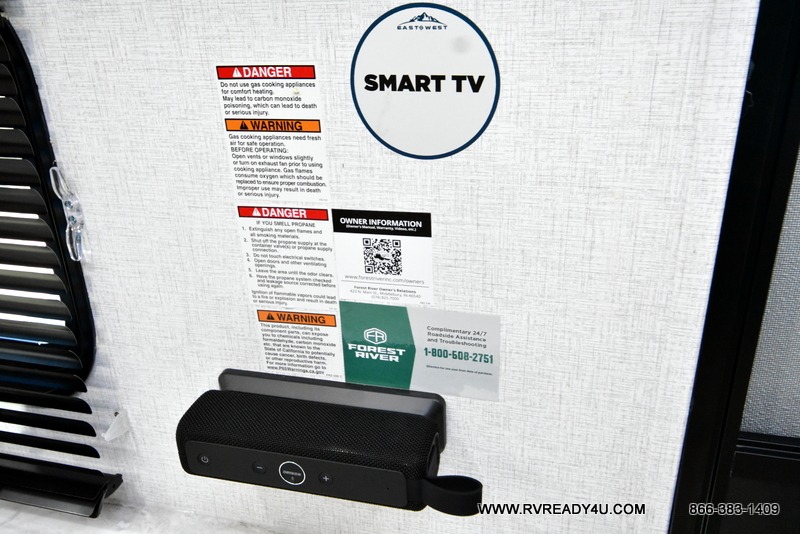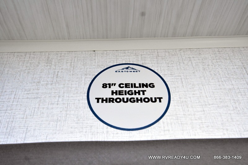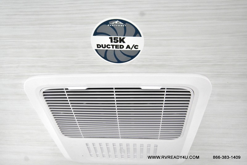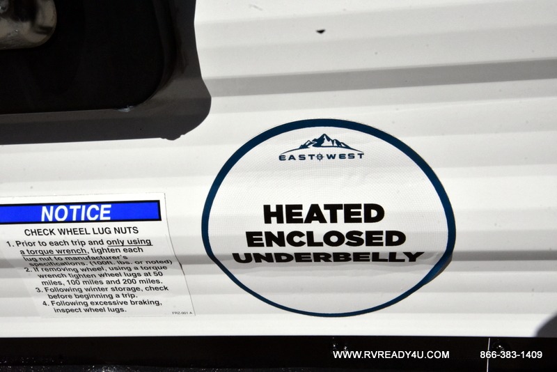 Each Della Terra travel trailer by EAST TO WEST is constructed with an enclosed and heated underbelly and enclosed holding tanks for added protection against the elements. There is also a power tongue jack with an LED light for easy set up and a power awning with LED lights you can rest under after you've unpacked. The Explore Comfort Package comes seamless pressed countertops, kitchen backsplash, window valance package with black night shades, and many more comforts. You will also appreciate the Adventure Outdoor Package with backup camera prep and solar prep, a tankless water heater, an RV grill quick disconnect, and a universal docking station with battery disconnect.