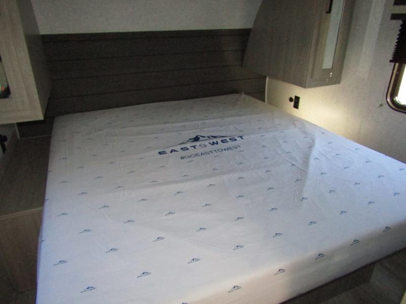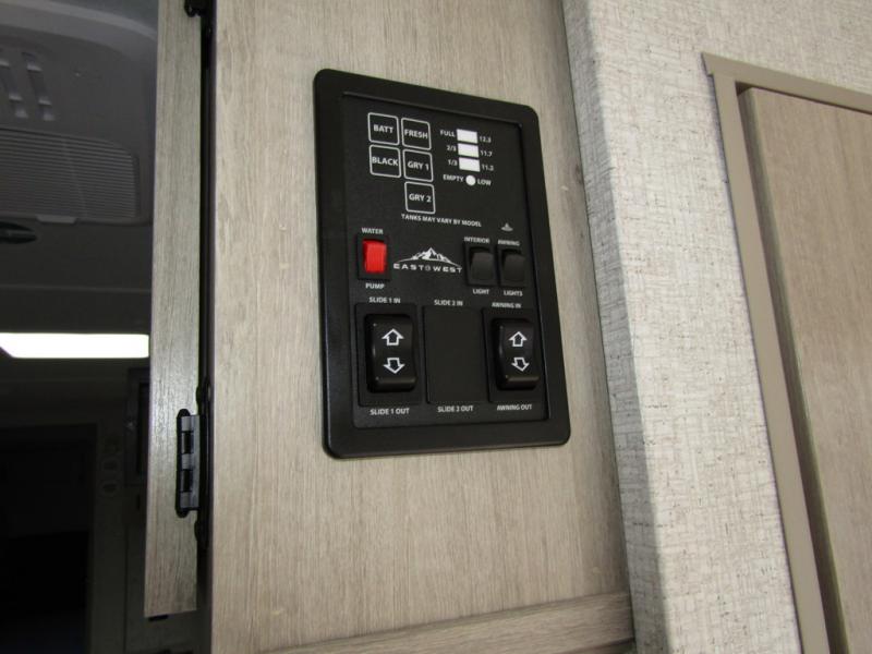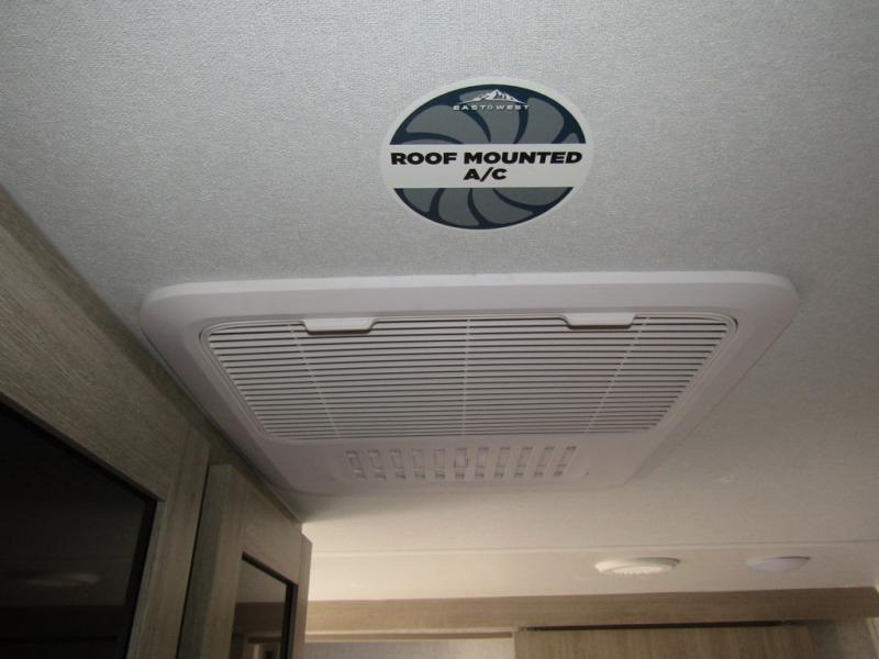 Each Della Terra travel trailer by EAST TO WEST is constructed with an enclosed and heated underbelly and enclosed holding tanks so you can camp all year long. There is also a power tongue jack with an LED light for easy set up and a power awning with LED lights you can rest under after you've unpacked. The Explore Comfort Package comes seamless pressed countertops, kitchen backsplash, window valance package with black night shades, and many more comforts. You will also appreciate the Adventure Outdoor Package with backup camera prep and solar prep, a tankless water heater, an RV grill quick disconnect, and a universal docking station with battery disconnect.