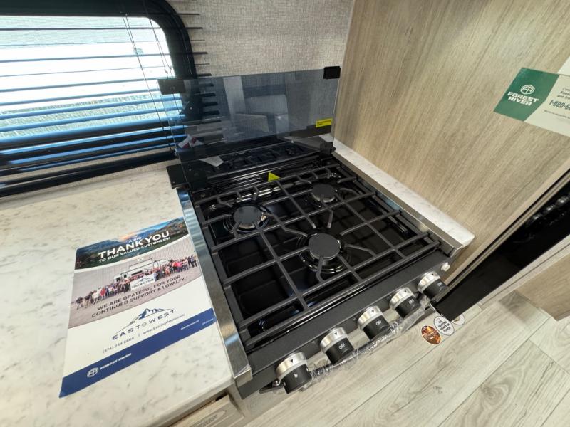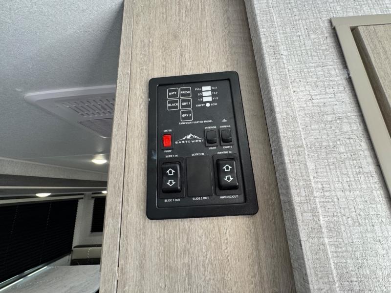 Each Della Terra travel trailer by EAST TO WEST is constructed with an enclosed and heated underbelly and enclosed holding tanks for added protection against the elements. There is also a power tongue jack with an LED light for easy set up and a power awning with LED lights you can rest under after you've unpacked. The Explore Comfort Package comes seamless pressed countertops, kitchen backsplash, window valance package with black night shades, and many more comforts. You will also appreciate the Adventure Outdoor Package with backup camera prep and solar prep, a tankless water heater, an RV grill quick disconnect, and a universal docking station with battery disconnect.