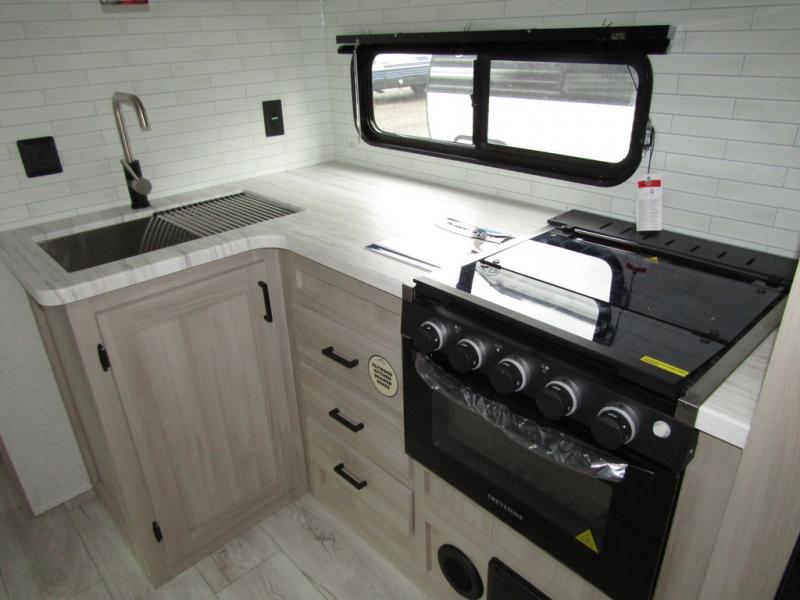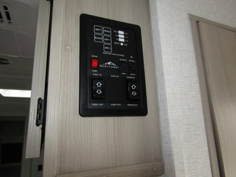 Each Della Terra travel trailer by EAST TO WEST is constructed with an enclosed and heated underbelly and enclosed holding tanks so you can camp all year long. There is also a power tongue jack with an LED light for easy set up and a power awning with LED lights you can rest under after you've unpacked. The Explore Comfort Package comes seamless pressed countertops, kitchen backsplash, window valance package with black night shades, and many more comforts. You will also appreciate the Adventure Outdoor Package with backup camera prep and solar prep, a tankless water heater, an RV grill quick disconnect, and a universal docking station with battery disconnect.