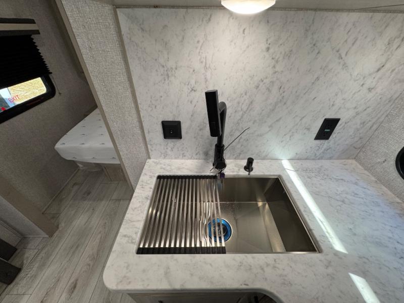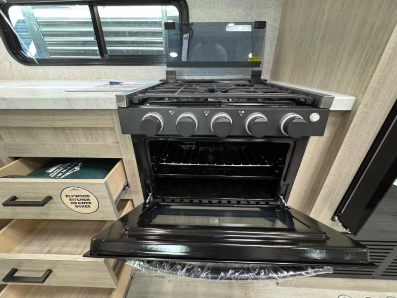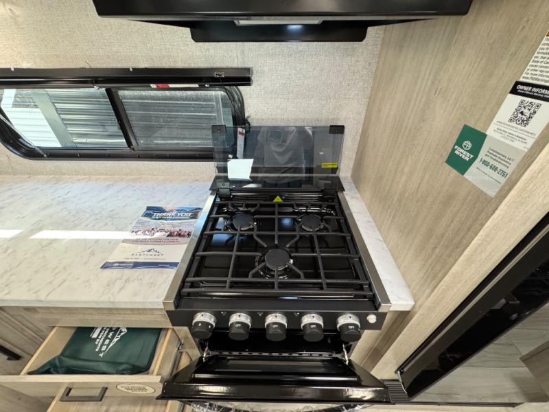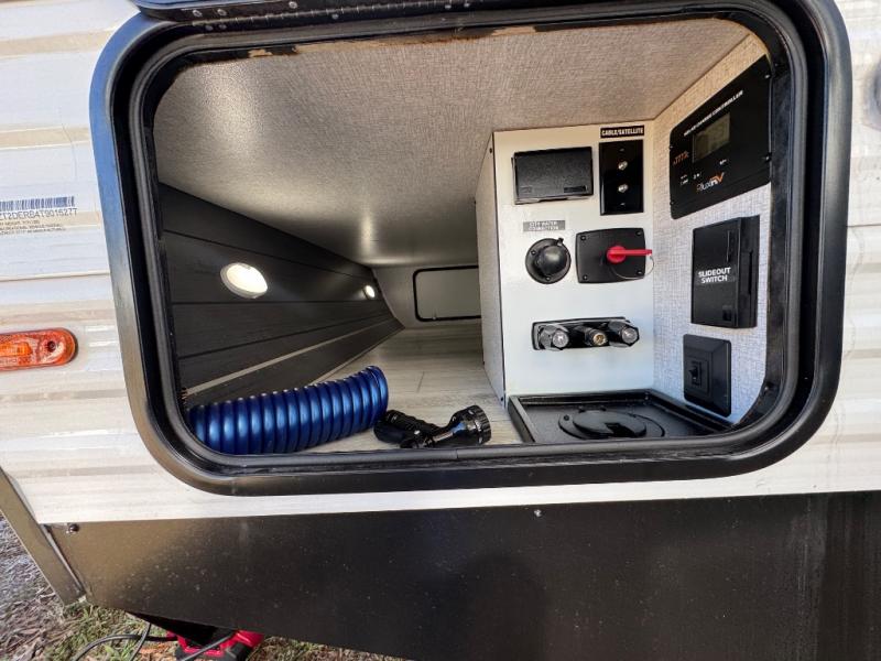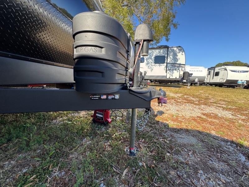 Each Della Terra travel trailer by EAST TO WEST is constructed with an enclosed and heated underbelly and enclosed holding tanks for added protection against the elements. There is also a power tongue jack with an LED light for easy set up and a power awning with LED lights you can rest under after you've unpacked. The Explore Comfort Package comes seamless pressed countertops, kitchen backsplash, window valance package with black night shades, and many more comforts. You will also appreciate the Adventure Outdoor Package with backup camera prep and solar prep, a tankless water heater, an RV grill quick disconnect, and a universal docking station with battery disconnect.