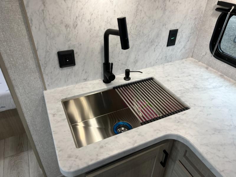 Each Della Terra travel trailer by EAST TO WEST is constructed with an enclosed and heated underbelly and enclosed holding tanks for added protection against the elements. There is also a power tongue jack with an LED light for easy set up and a power awning with LED lights you can rest under after you've unpacked. The Explore Comfort Package comes seamless pressed countertops, kitchen backsplash, window valance package with black night shades, and many more comforts. You will also appreciate the Adventure Outdoor Package with backup camera prep and solar prep, a tankless water heater, an RV grill quick disconnect, and a universal docking station with battery disconnect.