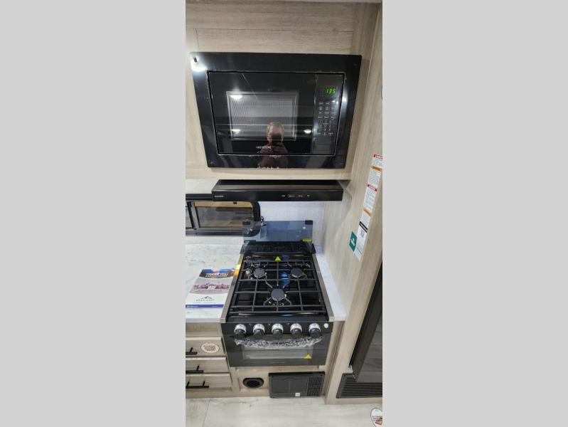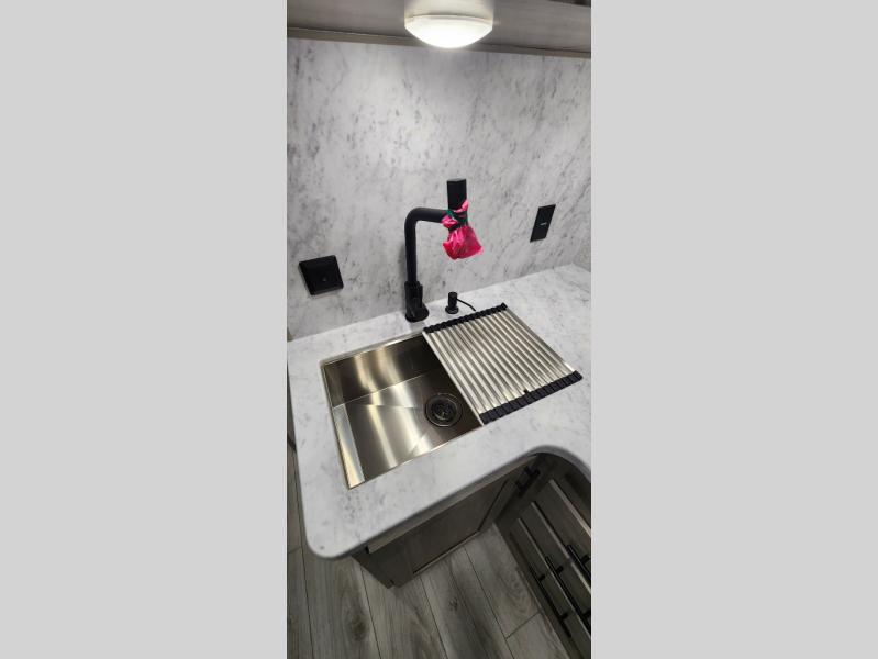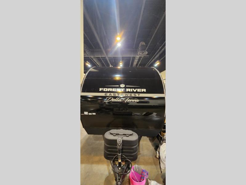 Each Della Terra travel trailer by EAST TO WEST is constructed with an enclosed and heated underbelly and enclosed holding tanks for added protection against the elements. There is also a power tongue jack with an LED light for easy set up and a power awning with LED lights you can rest under after you've unpacked. The Explore Comfort Package comes seamless pressed countertops, kitchen backsplash, window valance package with black night shades, and many more comforts. You will also appreciate the Adventure Outdoor Package with backup camera prep and solar prep, a tankless water heater, an RV grill quick disconnect, and a universal docking station with battery disconnect.