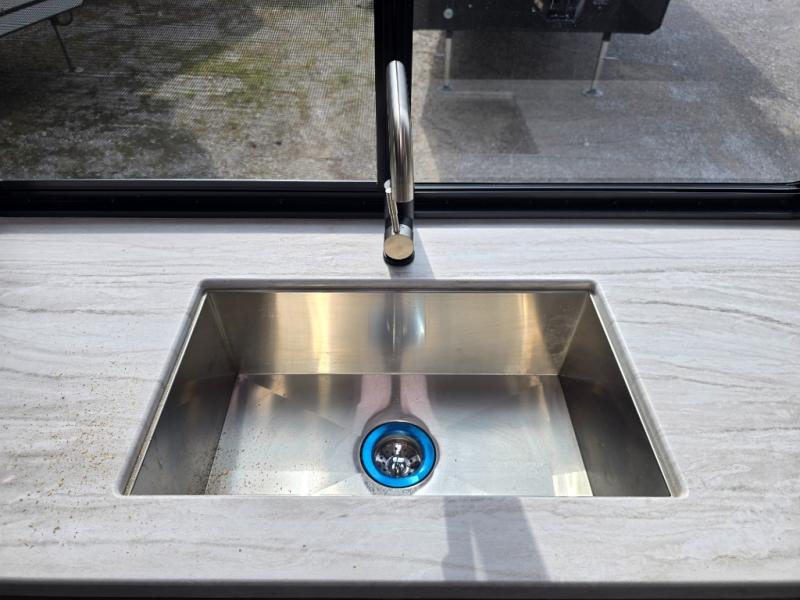Each Della Terra travel trailer by EAST TO WEST is constructed with an enclosed and heated underbelly and enclosed holding tanks so you can camp all year long. There is also a power tongue jack with an LED light for easy set up and a power awning with LED lights you can rest under after you've unpacked. The Explore Comfort Package comes seamless pressed countertops, kitchen backsplash, window valance package with black night shades, and many more comforts. You will also appreciate the Adventure Outdoor Package with backup camera prep and solar prep, a tankless water heater, an RV grill quick disconnect, and a universal docking station with battery disconnect.