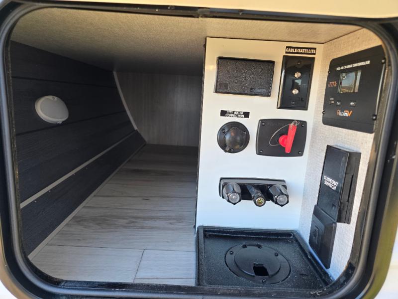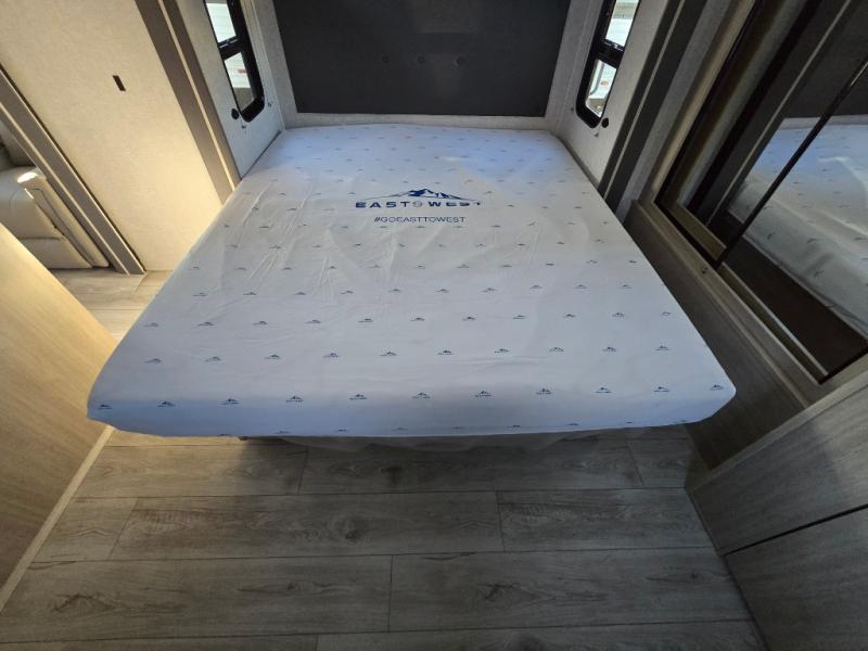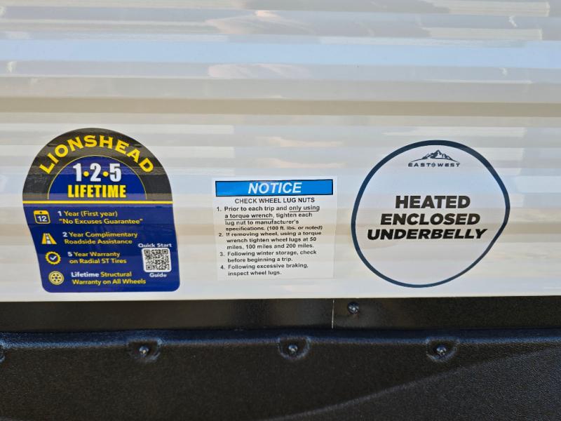 Each Della Terra travel trailer by EAST TO WEST is constructed with an enclosed and heated underbelly and enclosed holding tanks for added protection against the elements. There is also a power tongue jack with an LED light for easy set up and a power awning with LED lights you can rest under after you've unpacked. The Explore Comfort Package comes seamless pressed countertops, kitchen backsplash, window valance package with black night shades, and many more comforts. You will also appreciate the Adventure Outdoor Package with backup camera prep and solar prep, a tankless water heater, an RV grill quick disconnect, and a universal docking station with battery disconnect.