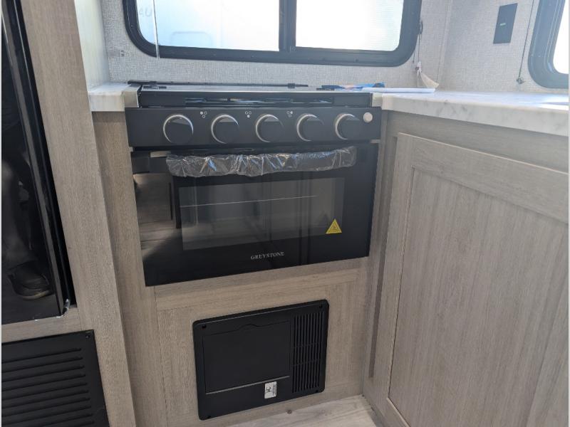 Each Della Terra travel trailer by EAST TO WEST is constructed with an enclosed and heated underbelly and enclosed holding tanks for added protection against the elements. There is also a power tongue jack with an LED light for easy set up and a power awning with LED lights you can rest under after you've unpacked. The Explore Comfort Package comes seamless pressed countertops, kitchen backsplash, window valance package with black night shades, and many more comforts. You will also appreciate the Adventure Outdoor Package with backup camera prep and solar prep, a tankless water heater, an RV grill quick disconnect, and a universal docking station with battery disconnect.
