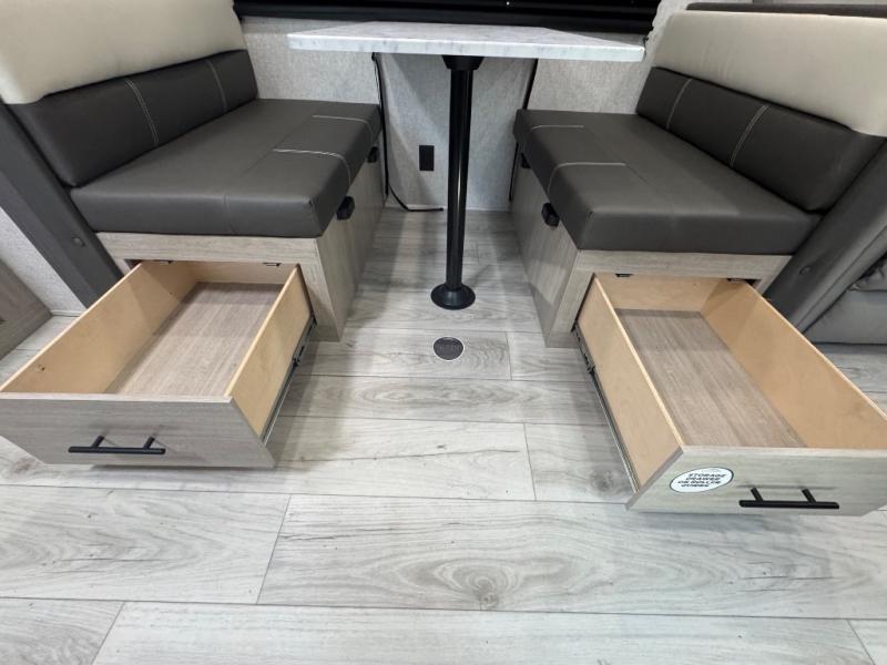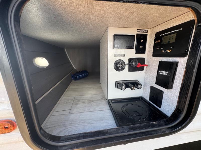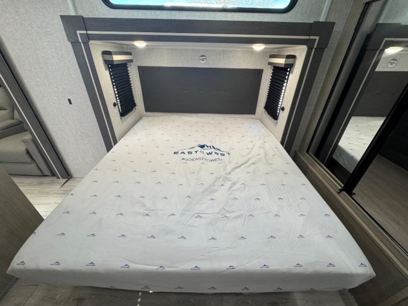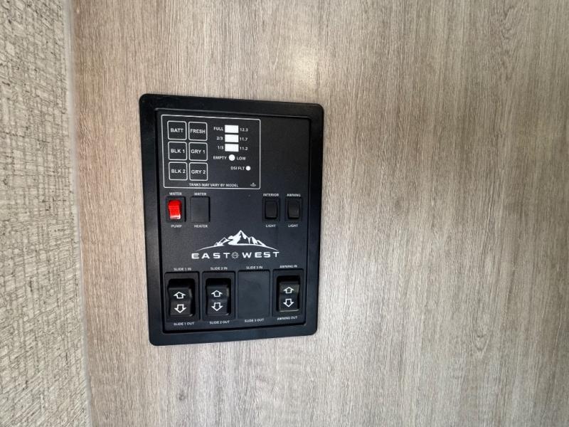 Each Della Terra travel trailer by EAST TO WEST is constructed with an enclosed and heated underbelly and enclosed holding tanks for added protection against the elements. There is also a power tongue jack with an LED light for easy set up and a power awning with LED lights you can rest under after you've unpacked. The Explore Comfort Package comes seamless pressed countertops, kitchen backsplash, window valance package with black night shades, and many more comforts. You will also appreciate the Adventure Outdoor Package with backup camera prep and solar prep, a tankless water heater, an RV grill quick disconnect, and a universal docking station with battery disconnect.