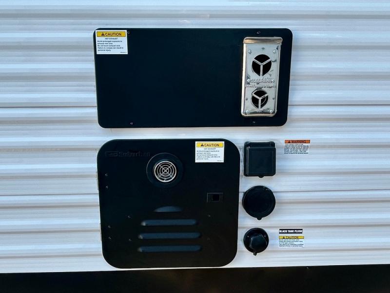 Each Della Terra travel trailer by EAST TO WEST is constructed with an enclosed and heated underbelly and enclosed holding tanks so you can camp all year long. There is also a power tongue jack with an LED light for easy set up and a power awning with LED lights you can rest under after you've unpacked. The Explore Comfort Package comes seamless pressed countertops, kitchen backsplash, window valance package with black night shades, and many more comforts. You will also appreciate the Adventure Outdoor Package with backup camera prep and solar prep, a tankless water heater, an RV grill quick disconnect, and a universal docking station with battery disconnect.