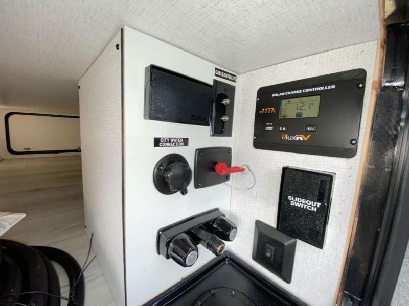 Each Della Terra travel trailer by EAST TO WEST is constructed with an enclosed and heated underbelly and enclosed holding tanks so you can camp all year long. There is also a power tongue jack with an LED light for easy set up and a power awning with LED lights you can rest under after you've unpacked. The Explore Comfort Package comes seamless pressed countertops, kitchen backsplash, window valance package with black night shades, and many more comforts. You will also appreciate the Adventure Outdoor Package with backup camera prep and solar prep, a tankless water heater, an RV grill quick disconnect, and a universal docking station with battery disconnect.