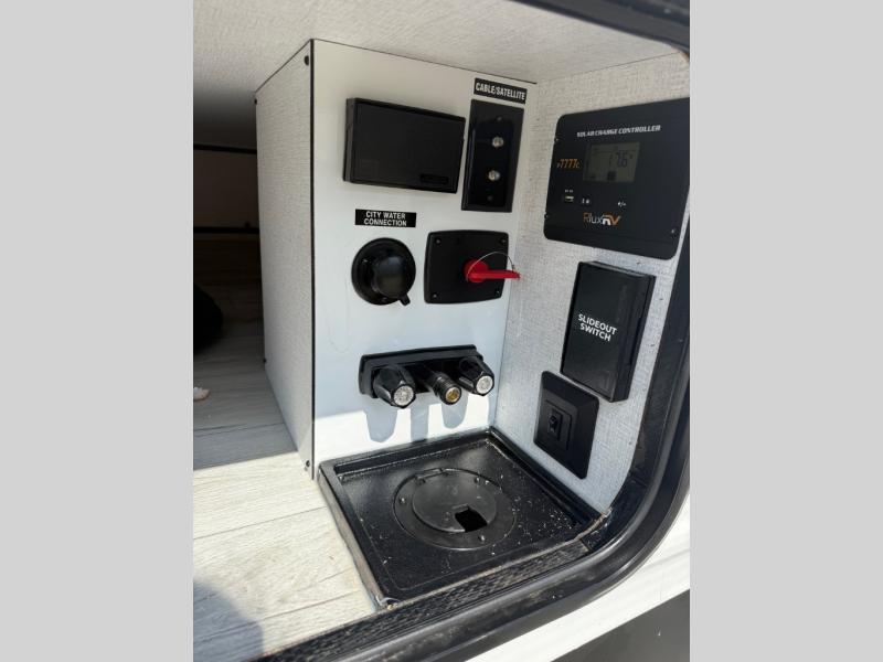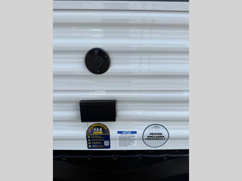 Each Della Terra travel trailer by EAST TO WEST is constructed with an enclosed and heated underbelly and enclosed holding tanks so you can camp all year long. There is also a power tongue jack with an LED light for easy set up and a power awning with LED lights you can rest under after you've unpacked. The Explore Comfort Package comes seamless pressed countertops, kitchen backsplash, window valance package with black night shades, and many more comforts. You will also appreciate the Adventure Outdoor Package with backup camera prep and solar prep, a tankless water heater, an RV grill quick disconnect, and a universal docking station with battery disconnect.