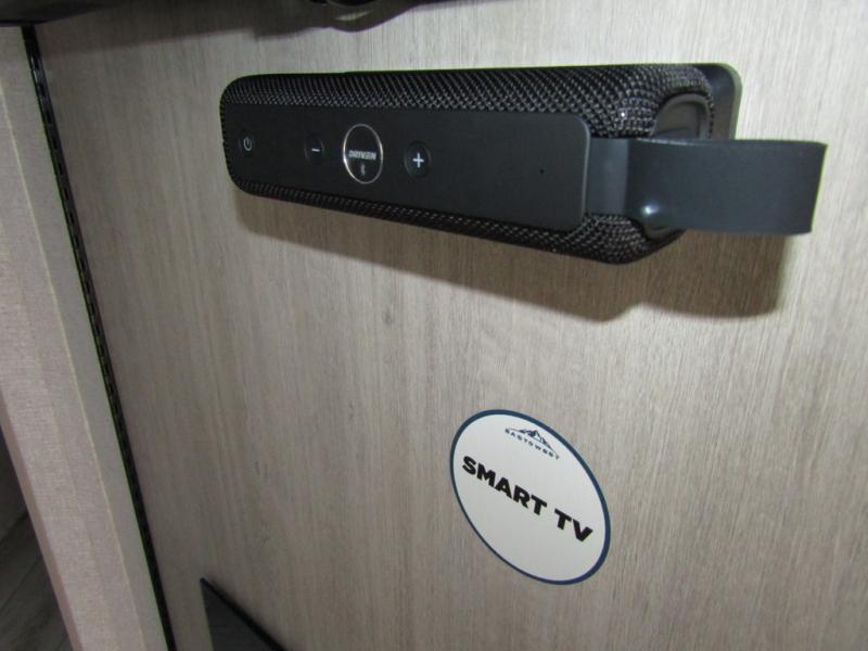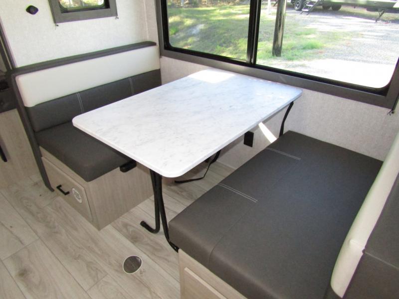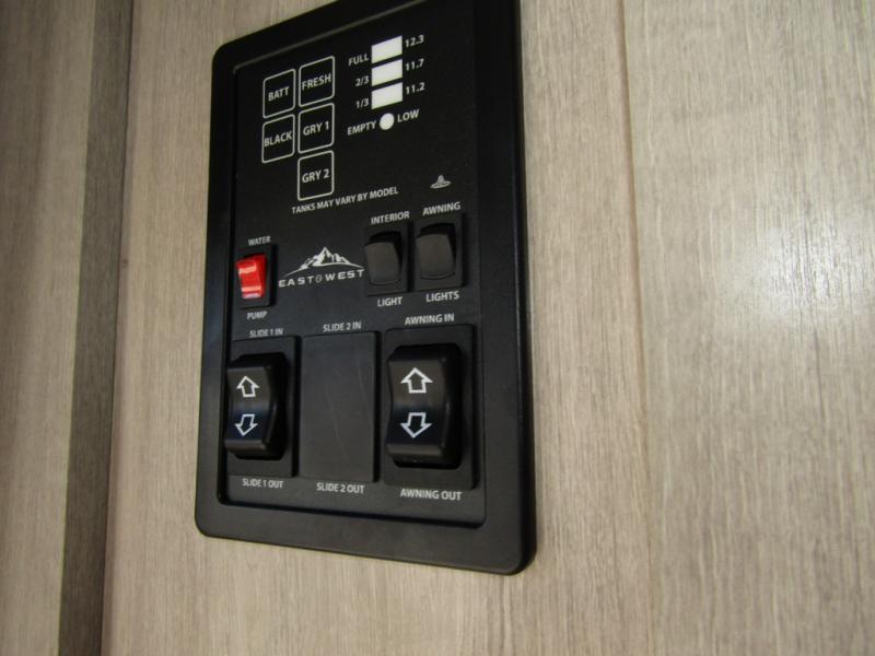 Each Della Terra travel trailer by EAST TO WEST is constructed with an enclosed and heated underbelly and enclosed holding tanks for added protection against the elements. There is also a power tongue jack with an LED light for easy set up and a power awning with LED lights you can rest under after you've unpacked. The Explore Comfort Package comes seamless pressed countertops, kitchen backsplash, window valance package with black night shades, and many more comforts. You will also appreciate the Adventure Outdoor Package with backup camera prep and solar prep, a tankless water heater, an RV grill quick disconnect, and a universal docking station with battery disconnect.