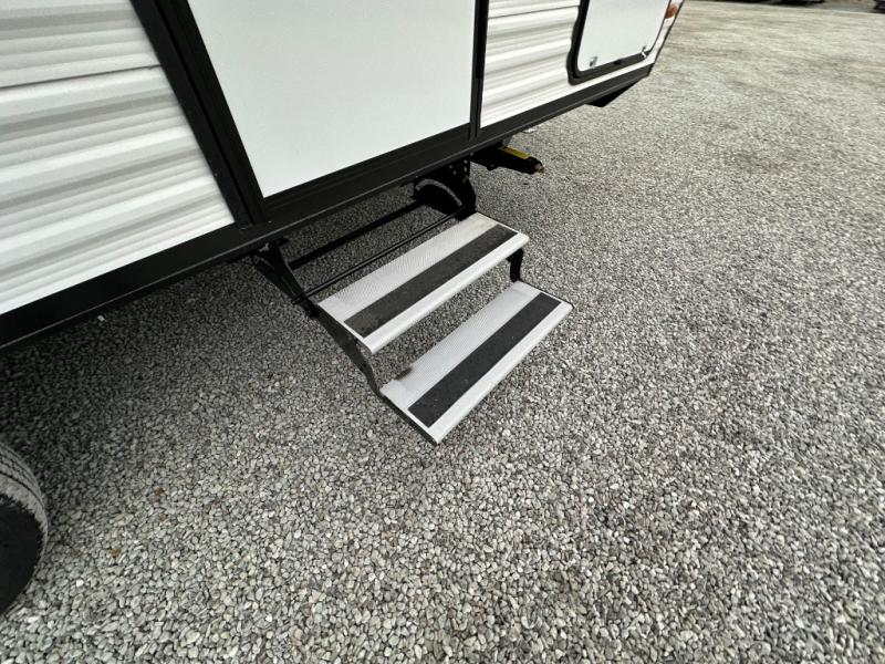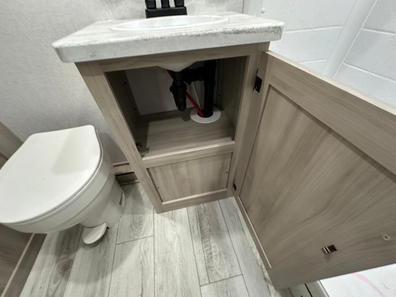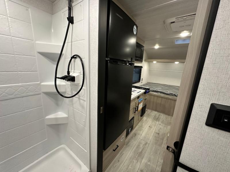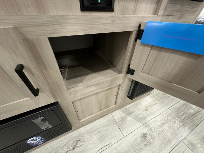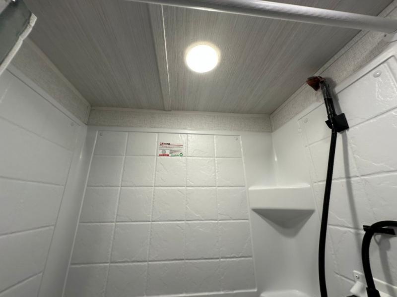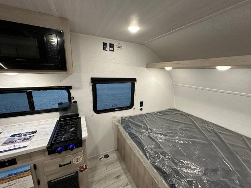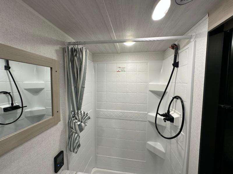 With any Della Terra LE travel trailer by EAST TO WEST, you will enjoy lightweight towing thanks to the single axle, along with many interior comforts. Each model is 8' wide with a 6' 9" interior ceiling height so you can walk around freely. There are seamless countertops also, along with motion sensor lights, a shower surround, and a USB charging station to keep your electronics ready to go. Outside, you'll find solar prep and ladder prep, an outside shower with hot and cold water, and a power awning with an LED light that will provide you with an inviting space outdoors.