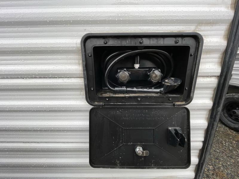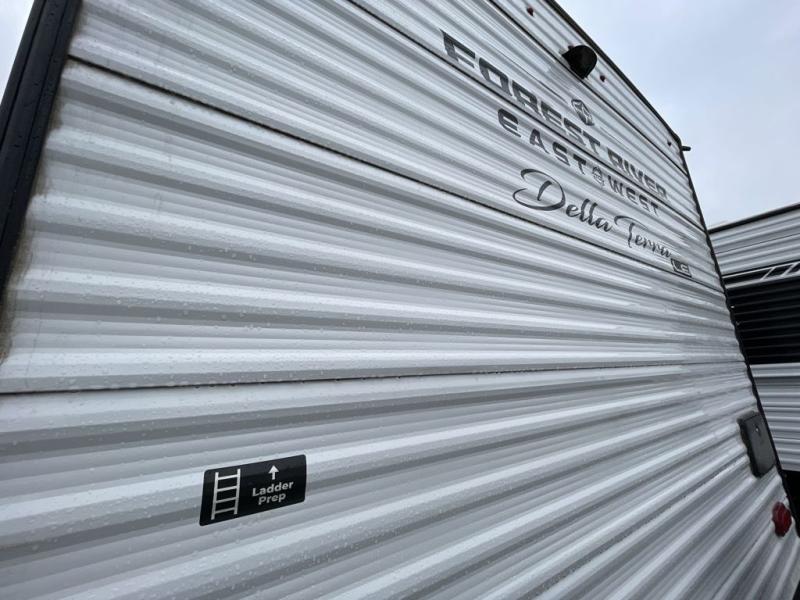 With any Della Terra LE travel trailer by EAST TO WEST, you will enjoy lightweight towing thanks to the single axle, along with many interior comforts. Each model is 8' wide with a 6' 9" interior ceiling height so you can walk around freely. There are seamless countertops also, along with motion sensor lights, a shower surround, and a USB charging station to keep your electronics ready to go. Outside, you'll find solar prep and ladder prep, an outside shower with hot and cold water, and a power awning with an LED light that will provide you with an inviting space outdoors.