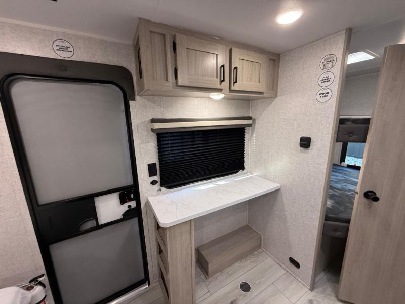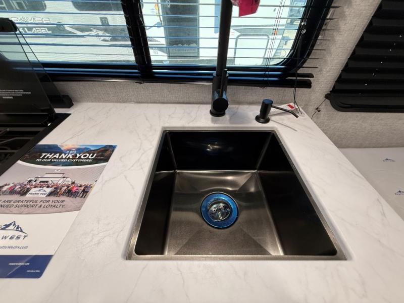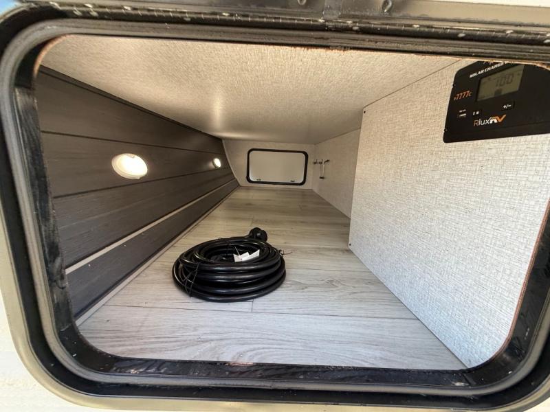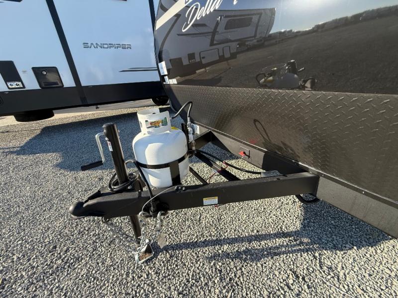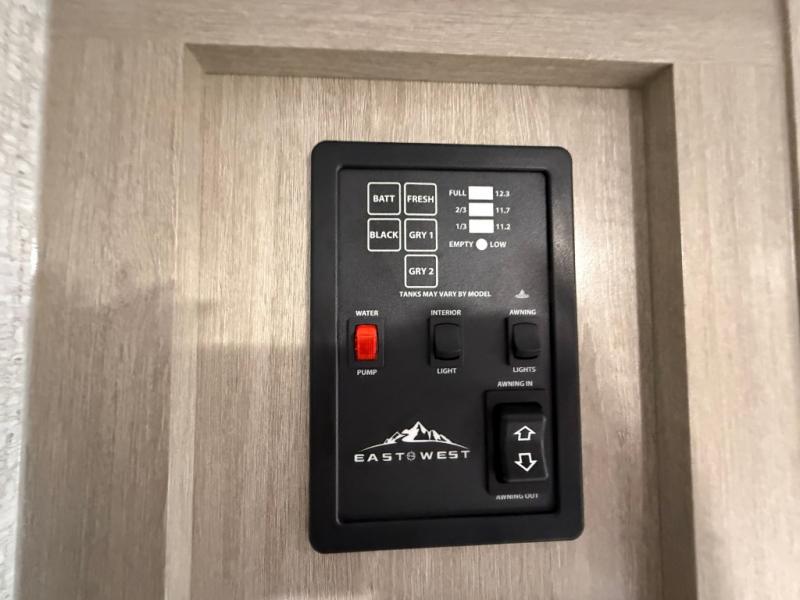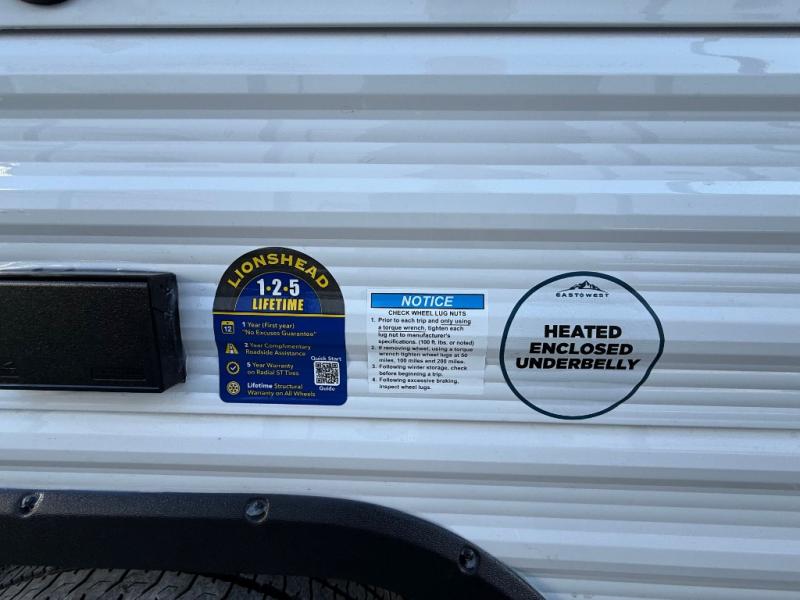 With any Della Terra LE travel trailer by EAST TO WEST, you will enjoy lightweight towing thanks to the single axle, along with many interior comforts. Each model is 8' wide with a 6' 9" interior ceiling height so you can walk around freely. There are seamless countertops also, along with motion sensor lights, a shower surround, and a USB charging station to keep your electronics ready to go. Outside, you'll find solar prep and ladder prep, an outside shower with hot and cold water, and a power awning with an LED light that will provide you with an inviting space outdoors.