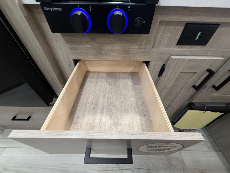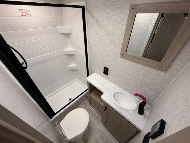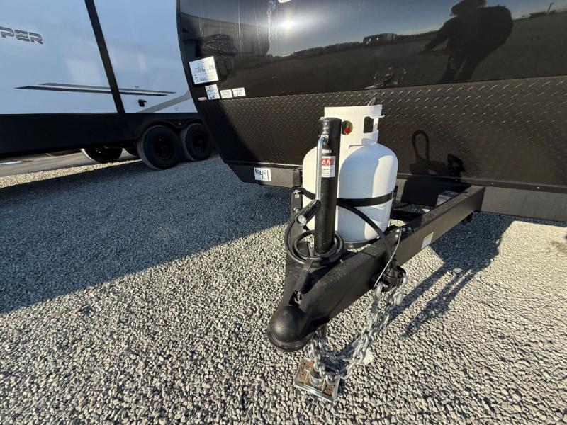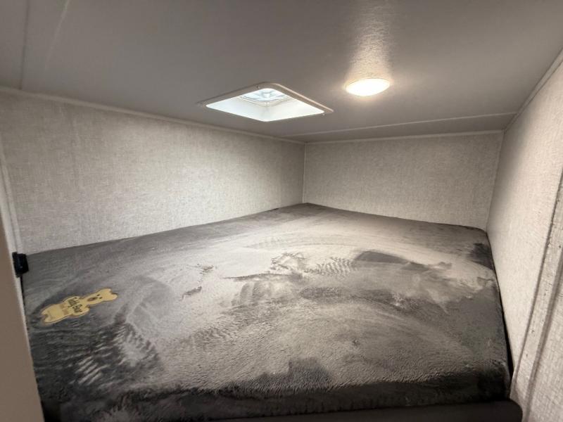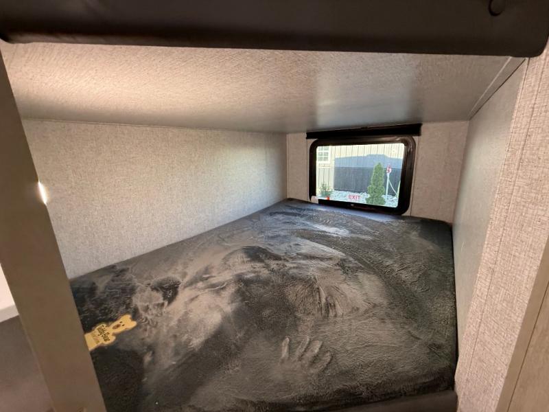 This is the perfect bunk travel trailer for your growing family. You will love the double-size bunks in back for the children or your guests, while you take the front queen bed. You can easily cook using the two burner range and microwave oven when you aren't cooking hotdogs and burgers over an open fire outside. There is flip-up storage under the front bed, under the booth dinette, and under the bunks. There is also a full bath with a walk-in shower that will allow you to freshen up without having to use the campground's facilities.