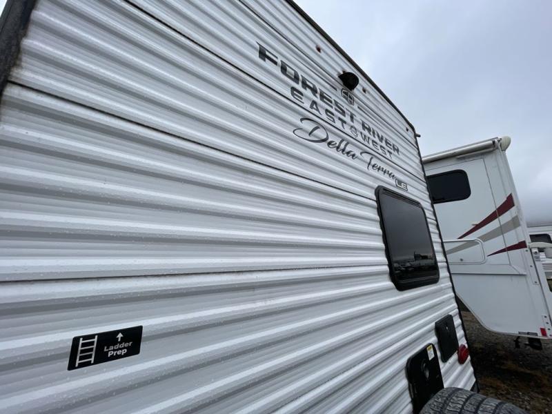 With any Della Terra LE travel trailer by EAST TO WEST, you will enjoy lightweight towing thanks to the single axle, along with many interior comforts. Each model is 8' wide with a 6' 9" interior ceiling height so you can walk around freely. There are seamless countertops also, along with motion sensor lights, a shower surround, and a USB charging station to keep your electronics ready to go. Outside, you'll find solar prep and ladder prep, an outside shower with hot and cold water, and a power awning with an LED light that will provide you with an inviting space outdoors.
