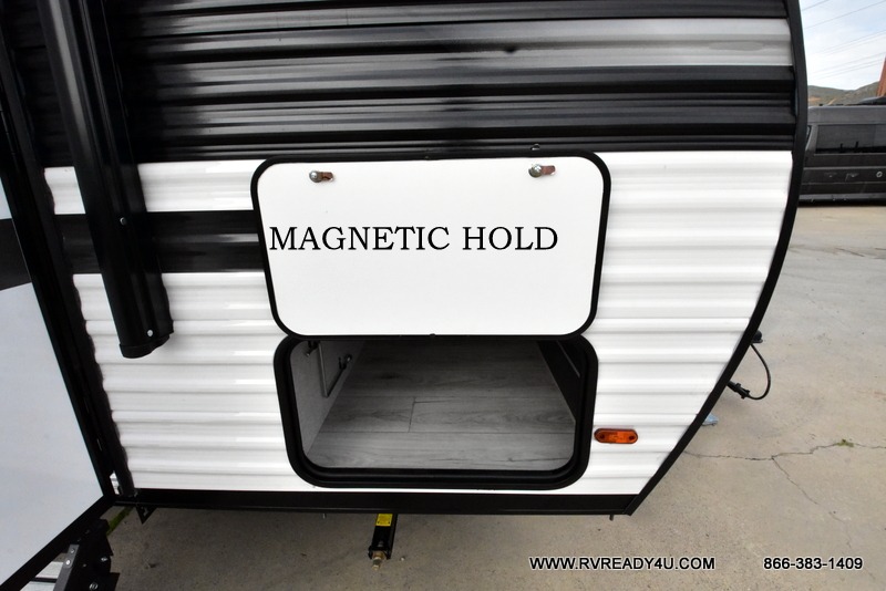 This is the perfect bunk travel trailer for your growing family. You will love the double-size bunks in back for the children or your guests, while you take the front queen bed. You can easily cook using the two burner range and microwave oven when you aren't cooking hotdogs and burgers over an open fire outside. There is flip-up storage under the front bed, under the booth dinette, and under the bunks. There is also a full bath with a walk-in shower that will allow you to freshen up without having to use the campground's facilities.