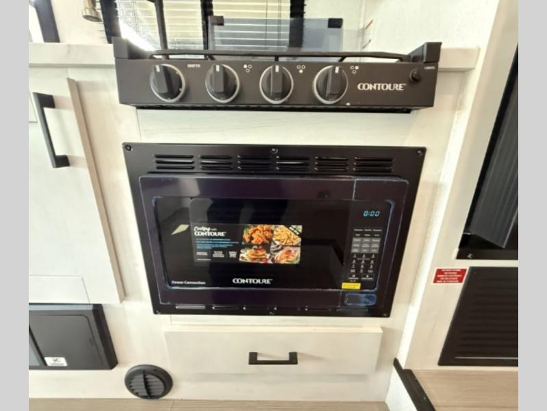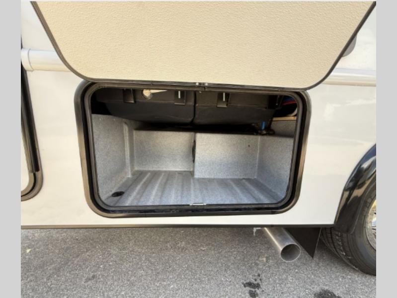 The journey will be oh-so enjoyable when you use this Entrada Class C gas motorhome to explore! You will be able to create meals each day you are on the road because the kitchen has everything you will need, like a convection microwave, a round sink, a cooktop, a flip-up countertop, and a 10.7-cubic foot refrigerator. There is even a pantry/wardrobe to store spices, chips, or canned goods. The rear of this unit includes the queen bed in one corner and the private bath in the other, and you can close the privacy curtain here to make a master bedroom for extra comfort!