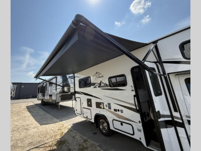 With any Entrada Class C gas motorhome from EAST TO WEST, the construction consists of an automotive painted fiberglass front cap, a Dicor DiFlex ll TPO roof membrane, and Azdel composite sidewalls for added durability. Some of the Entrada value package features include 12V tank heaters to camp during the cooler months, the Winegard Air 360+, plus backup and sideview cameras with a monitor for safety on and off the road. The interior offers a 7-foot interior height for a spacious feel, and 12V USB charge ports will keep your electronics powered up. Choose an Entrada for its tasteful design, attention to detail, bright interior and affordable price-point!
