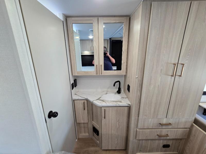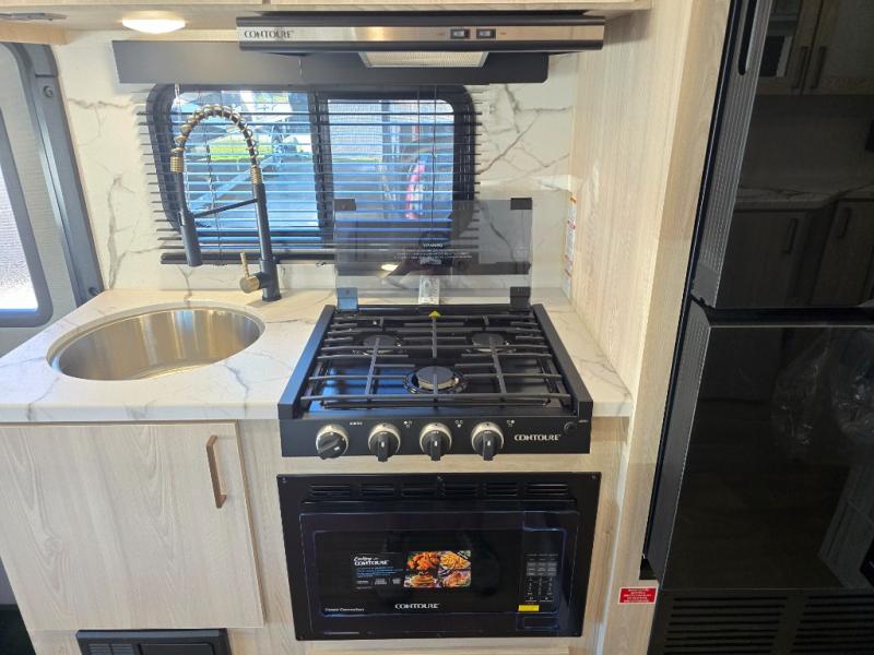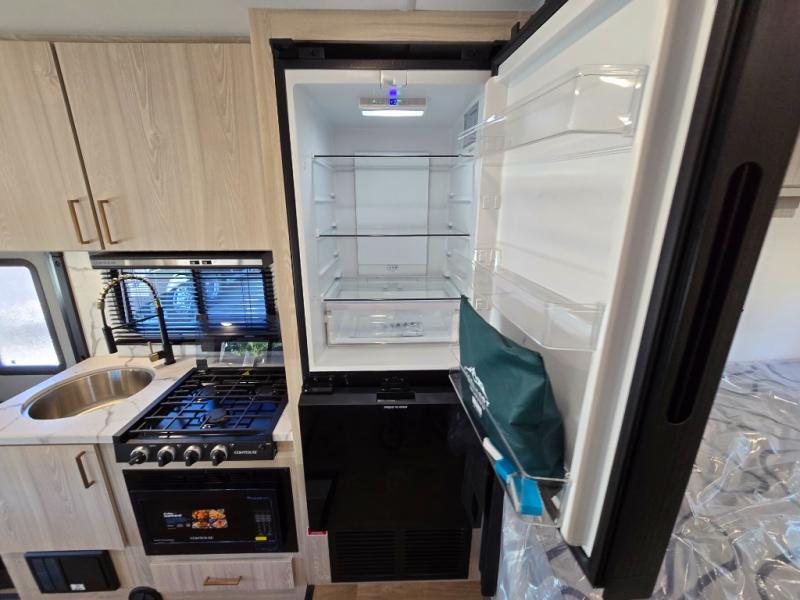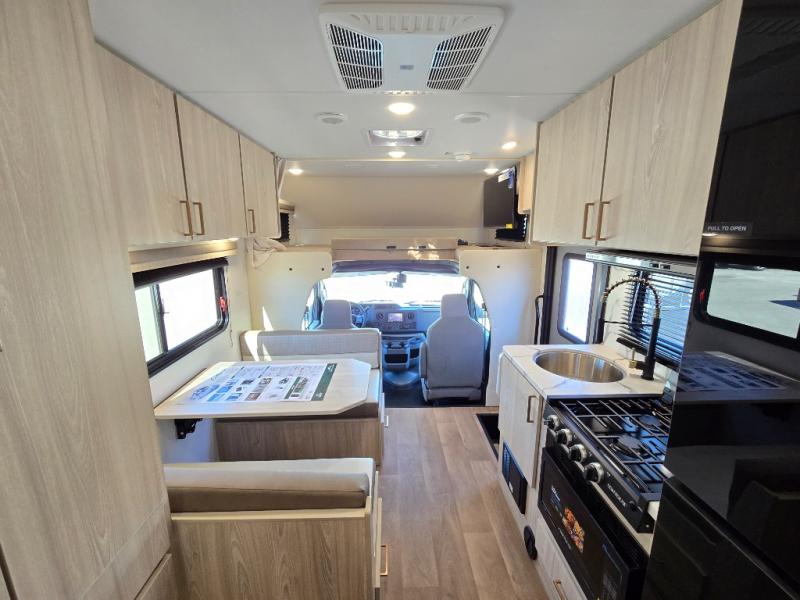 The journey will be oh-so enjoyable when you use this Entrada Class C gas motorhome to explore! You will be able to create meals each day you are on the road because the kitchen has everything you will need, like a convection microwave with air fryer technology, a round sink, a cooktop, a flip-up countertop, and a 10.7-cubic foot refrigerator. There is even a pantry/wardrobe to store spices, chips, or canned goods. The rear of this unit includes the queen bed in one corner and the private bath in the other, and you can close the privacy curtain here to make a master bedroom for extra comfort!