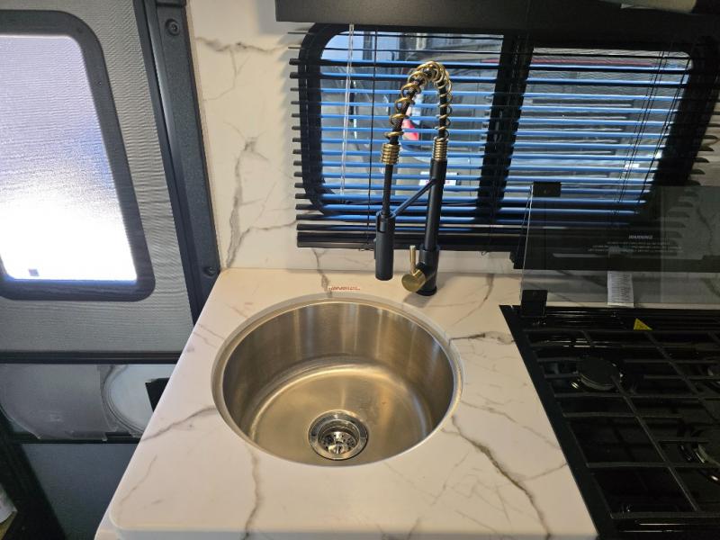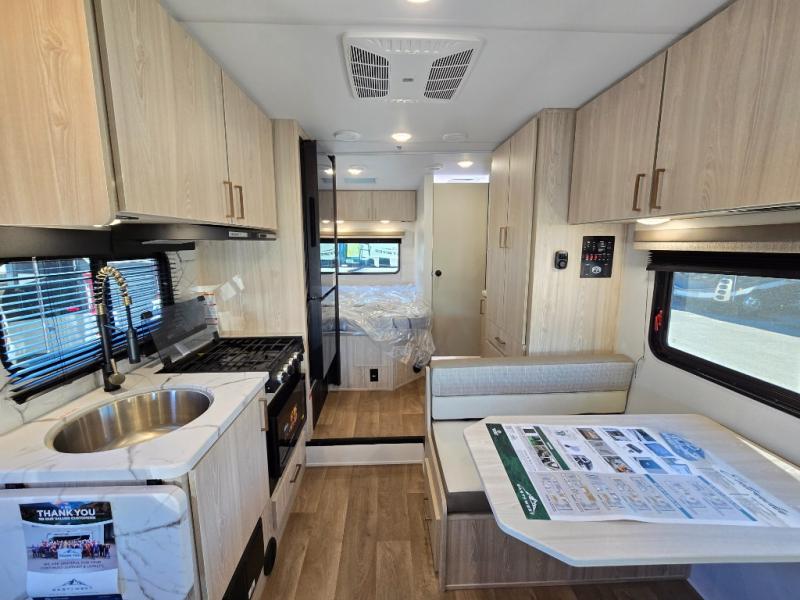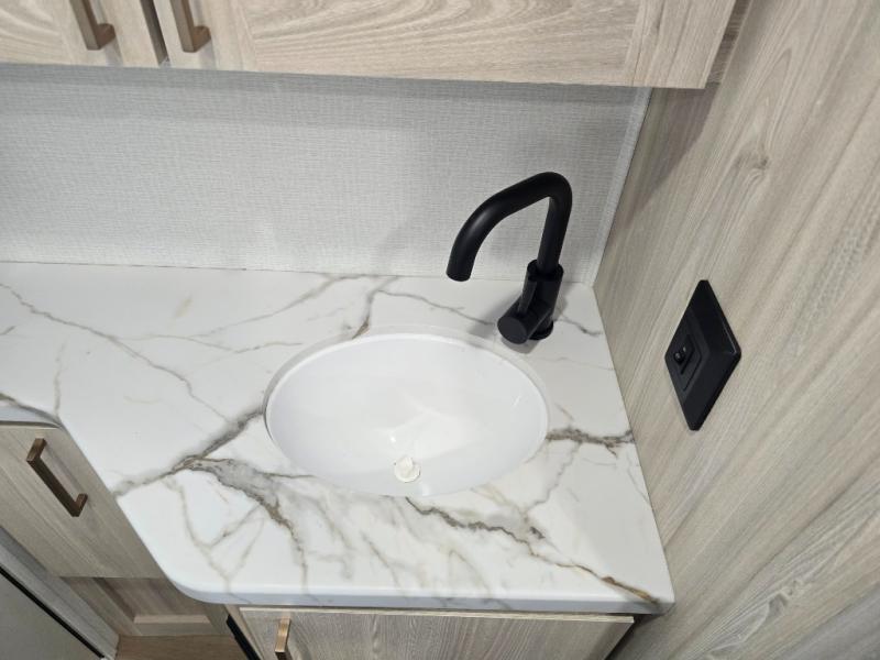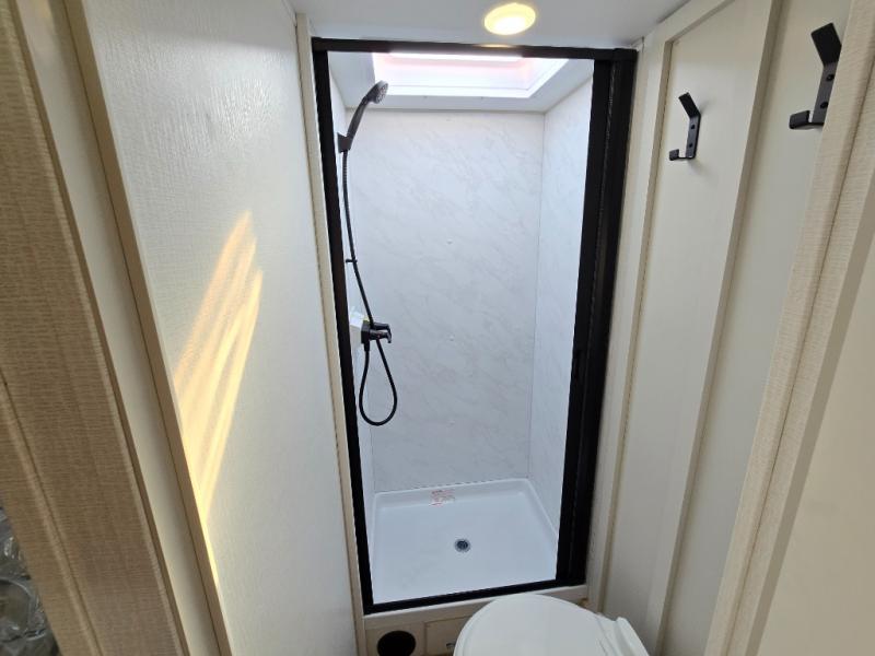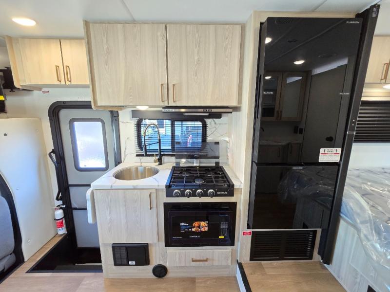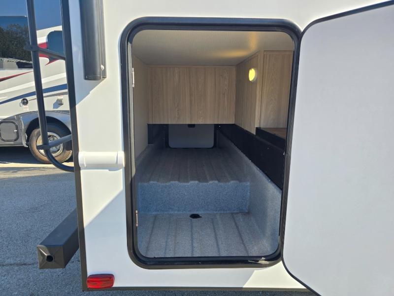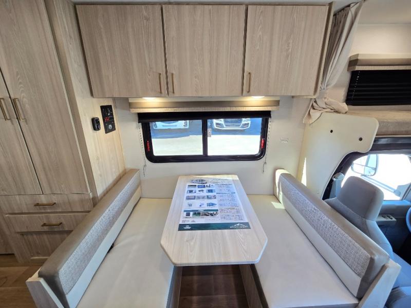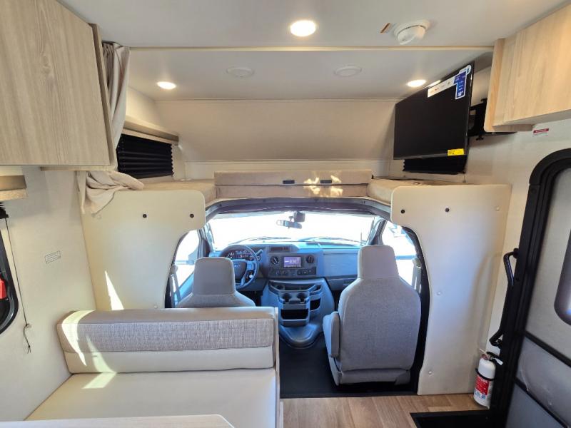 With any Entrada Class C gas motorhome from EAST TO WEST, the construction consists of a one-piece painted fiberglass front cap, a TPO roof membrane, and 2" Azdel composite sidewalls for added durability. There are rotocast exterior storage compartments with slam latch doors, along with an exterior LP Quick Connect, and a power awning with an LED light strip. You will also find rear and sideview cameras to help make maneuvering and parking your RV easier than ever. Inside, you'll feel right at home with soft close hardwood cabinet doors and drawers, a high-altitude tankless water heater, plus a 12V smart TV and USB ports to keep your electronics charged up!