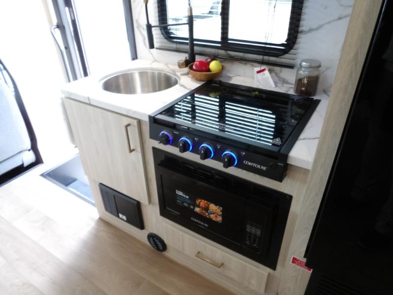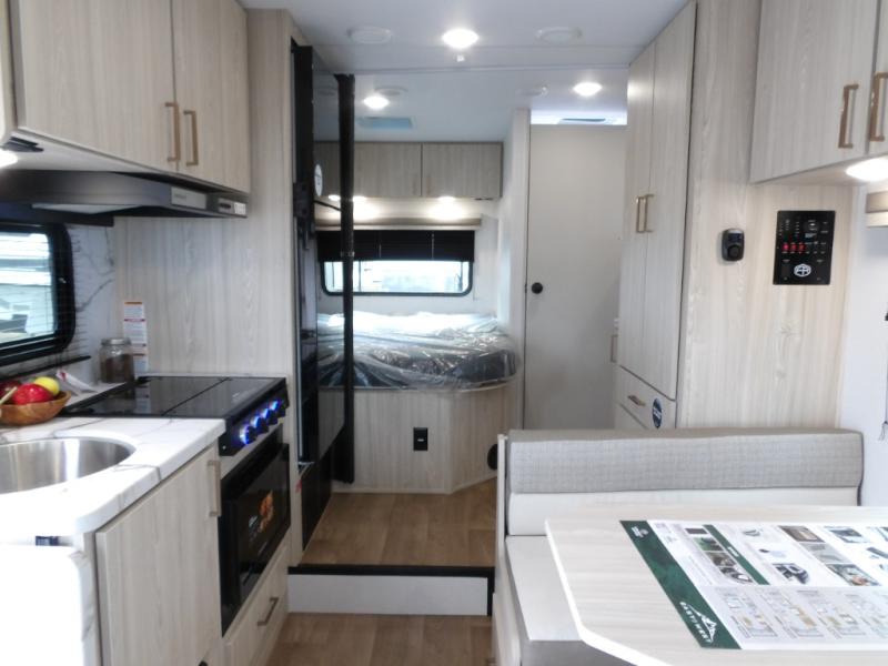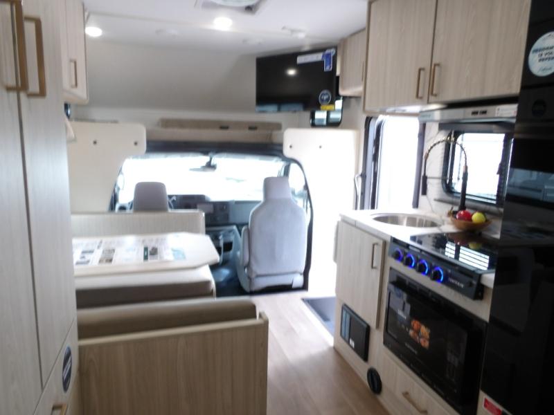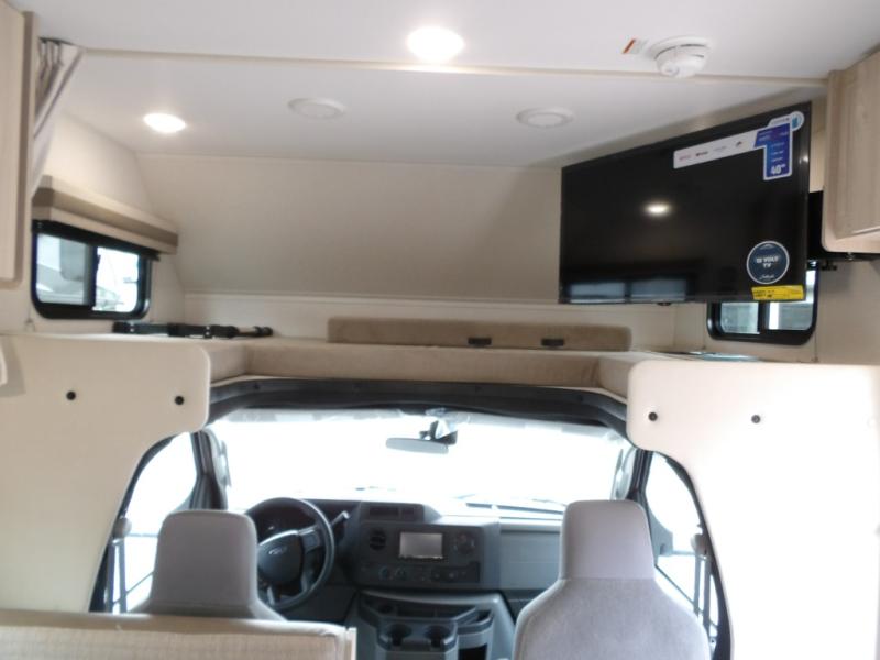 With any Entrada Class C gas motorhome from EAST TO WEST, the construction consists of a one-piece painted fiberglass front cap, a TPO roof membrane, and 2" Azdel composite sidewalls for added durability. There are rotocast exterior storage compartments with slam latch doors, along with an exterior LP Quick Connect, and a power awning with an LED light strip. You will also find rear and sideview cameras to help make maneuvering and parking your RV easier than ever. Inside, you'll feel right at home with soft close hardwood cabinet doors and drawers, a high-altitude tankless water heater, plus a 12V smart TV and USB ports to keep your electronics charged up!