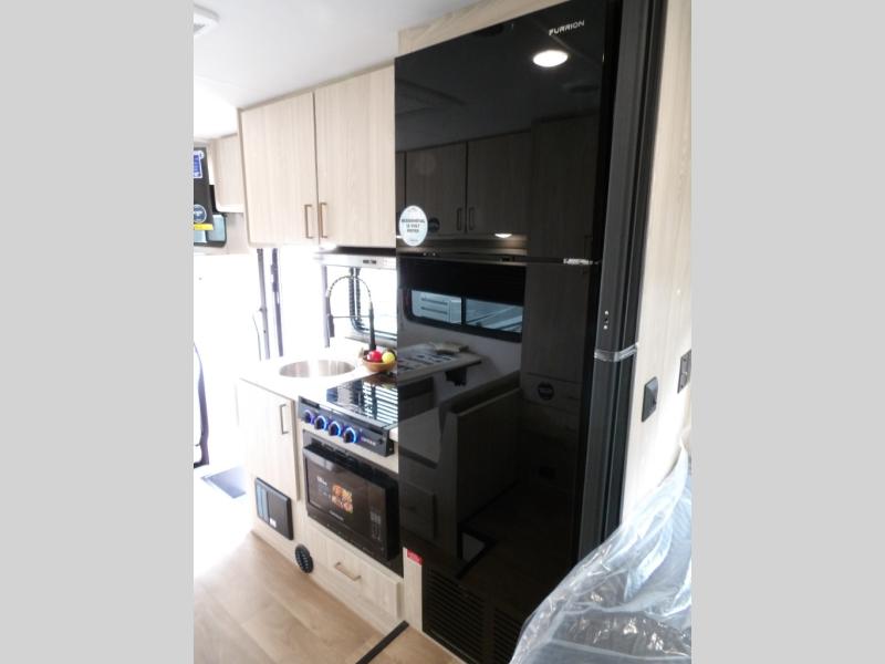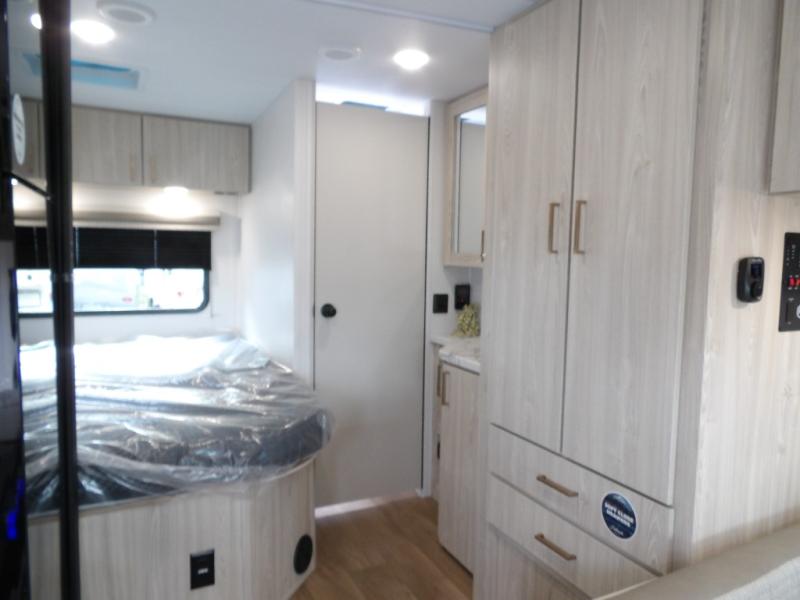 The journey will be oh-so enjoyable when you use this Entrada Class C gas motorhome to explore! You will be able to create meals each day you are on the road because the kitchen has everything you will need, like a convection microwave with air fryer technology, a round sink, a cooktop, a flip-up countertop, and a 10.7-cubic foot refrigerator. There is even a pantry/wardrobe to store spices, chips, or canned goods. The rear of this unit includes the queen bed in one corner and the private bath in the other, and you can close the privacy curtain here to make a master bedroom for extra comfort!