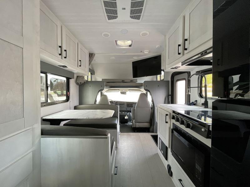 With any Entrada Class C gas motorhome from EAST TO WEST, the construction consists of an automotive painted fiberglass front cap, a Dicor DiFlex ll TPO roof membrane, and Azdel composite sidewalls for added durability. Some of the Entrada value package features include 12V tank heaters to camp during the cooler months, the Winegard Air 360+, plus backup and sideview cameras with a monitor for safety on and off the road. The interior offers a 7-foot interior height for a spacious feel, and 12V USB charge ports will keep your electronics powered up. Choose an Entrada for its tasteful design, attention to detail, bright interior and affordable price-point!