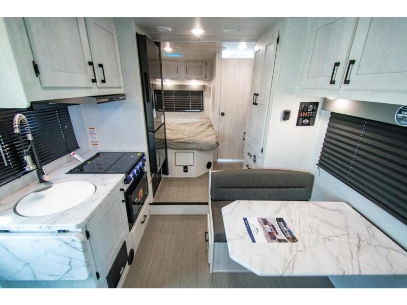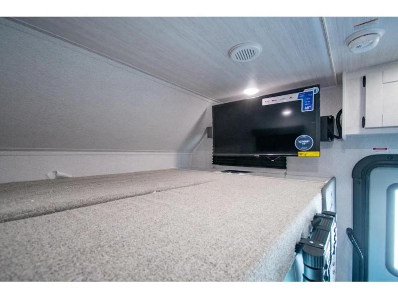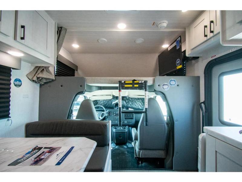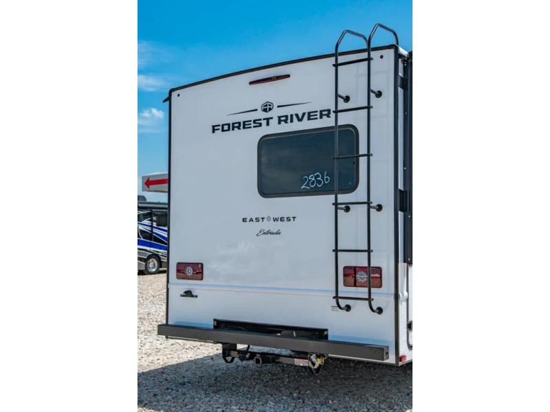 With any Entrada Class C gas motorhome from EAST TO WEST, the construction consists of a one-piece painted fiberglass front cap, a TPO roof membrane, and 2" Azdel composite sidewalls for added durability. There are rotocast exterior storage compartments with slam latch doors, along with an exterior LP Quick Connect, and a power awning with an LED light strip. You will also find rear and sideview cameras to help make maneuvering and parking your RV easier than ever. Inside, you'll feel right at home with soft close hardwood cabinet doors and drawers, a high-altitude tankless water heater, plus a 12V smart TV and USB ports to keep your electronics charged up!