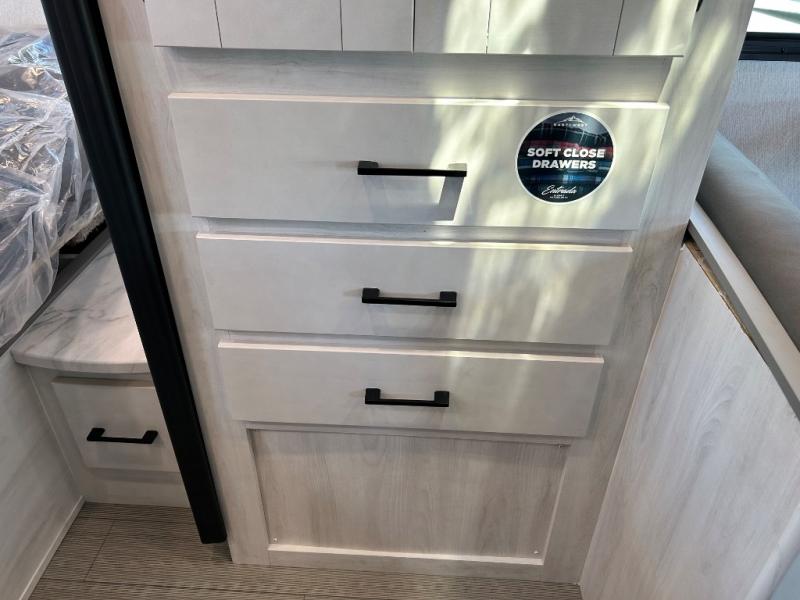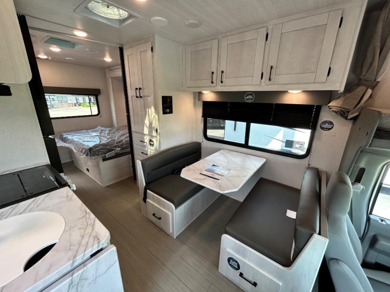 With any Entrada Class C gas motorhome from EAST TO WEST, the construction consists of an automotive painted fiberglass front cap, a Dicor DiFlex ll TPO roof membrane, and Azdel composite sidewalls for added durability. Some of the Entrada value package features include 12V tank heaters to camp during the cooler months, the Winegard Air 360+, plus backup and sideview cameras with a monitor for safety on and off the road. The interior offers a 7-foot interior height for a spacious feel, and 12V USB charge ports will keep your electronics powered up. Choose an Entrada for its tasteful design, attention to detail, bright interior and affordable price-point!