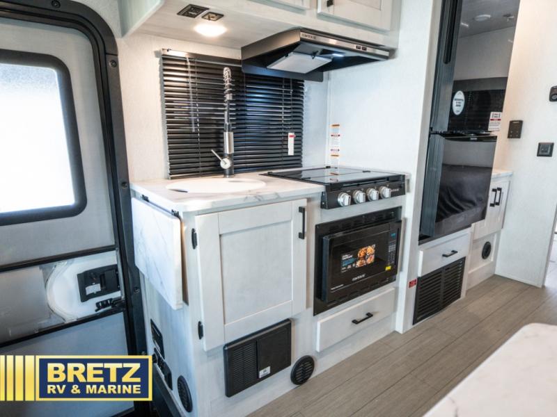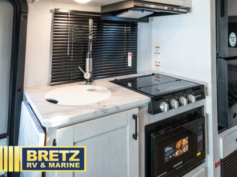 With any Entrada Class C gas motorhome from EAST TO WEST, the construction consists of an automotive painted fiberglass front cap, a Dicor DiFlex ll TPO roof membrane, and Azdel composite sidewalls for added durability. Some of the Entrada value package features include 12V tank heaters to camp during the cooler months, the Winegard Air 360+, plus backup and sideview cameras with a monitor for safety on and off the road. The interior offers a 7-foot interior height for a spacious feel, and 12V USB charge ports will keep your electronics powered up. Choose an Entrada for its tasteful design, attention to detail, bright interior and affordable price-point!